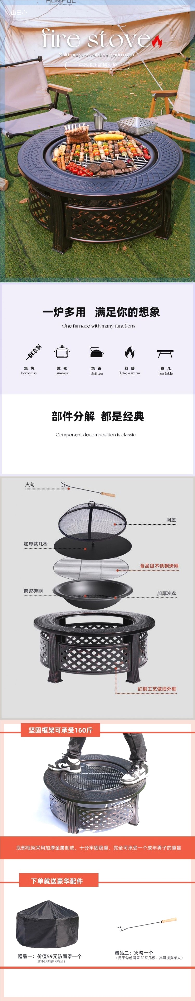 • 바베큐 테이블 패키지 2(데스크탑 커버 그릴 + 레인 커버 + 대나무 숯 + 바베큐 포함)