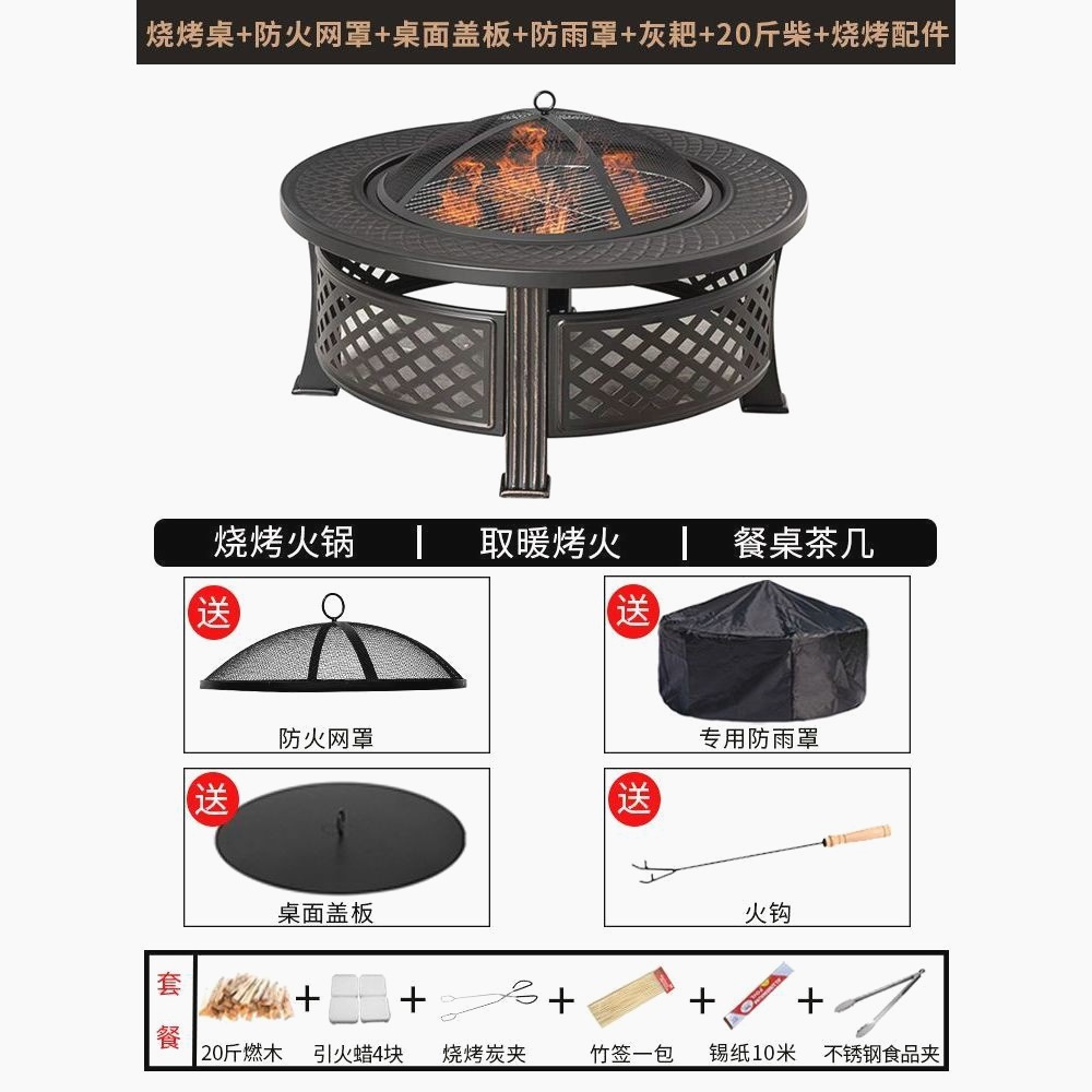 야외 장인 바베큐 테이블 안뜰 가정용 대형 숯 화재 동그라미 스토브 차 요리 숯 모닥불 빌라 테라스 스토브