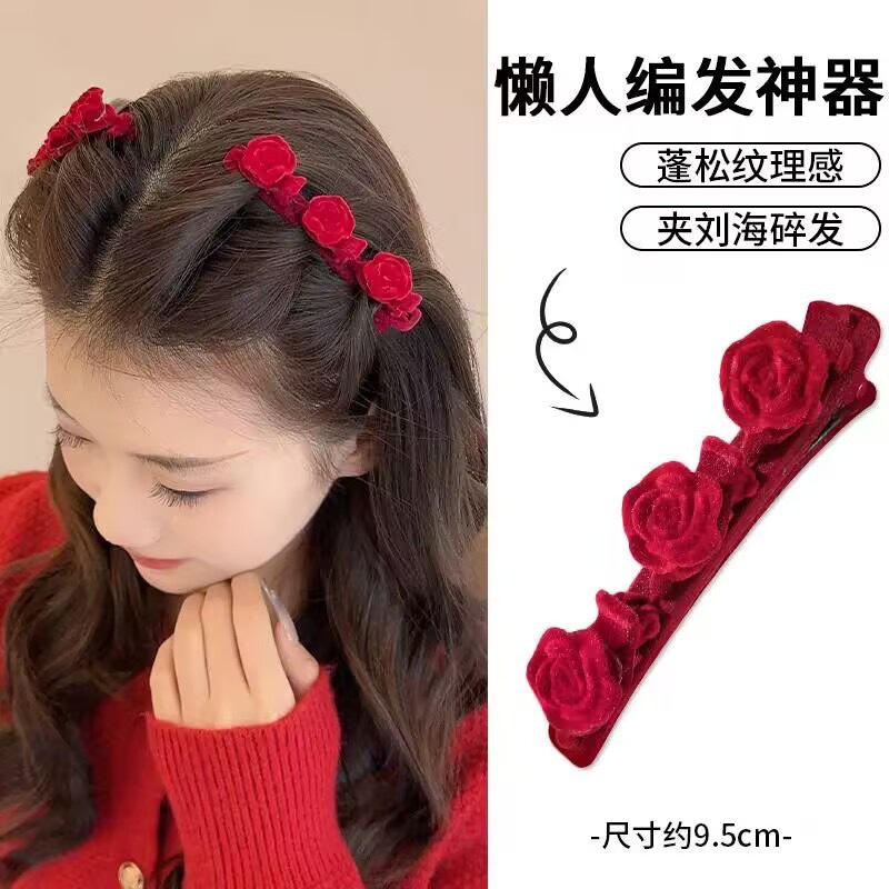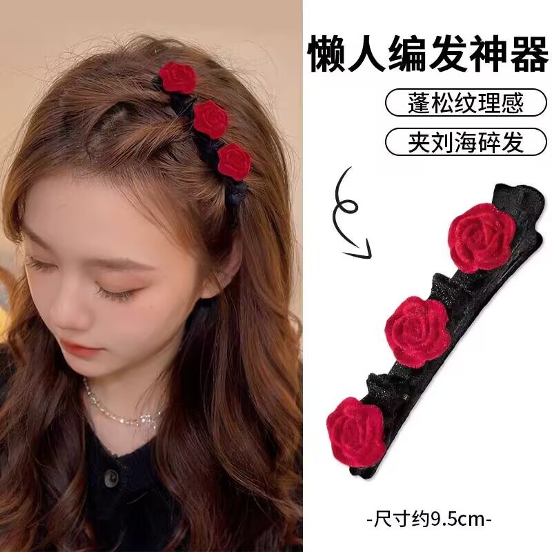 가을과 겨울 빨간 무리 장미 꽃 헤어 클립 사이드 클립 사이드 앞머리 이마 오리 지폐 클립 헤어 클립 머리 장식