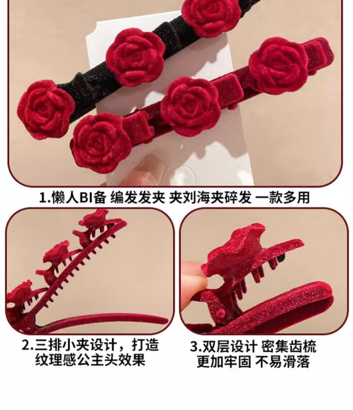 가을과 겨울 빨간 무리 장미 꽃 헤어 클립 사이드 클립 사이드 앞머리 이마 오리 지폐 클립 헤어 클립 머리 장식스토어 가기