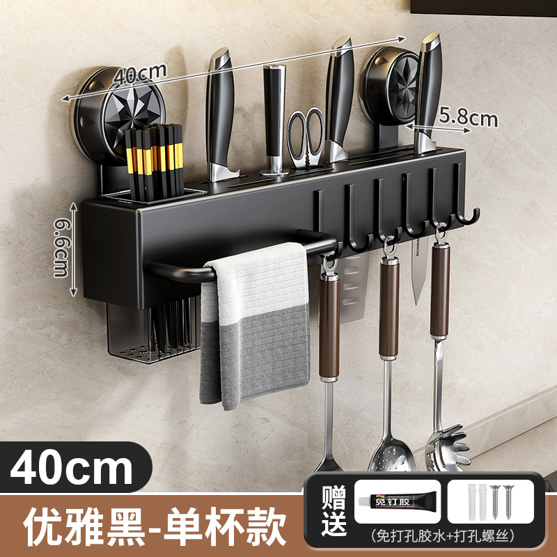 • 흡착컵 칼꽂이 - 엘레강트 블랙 40cm (젓가락통 1개 + 고리 6개 포함)