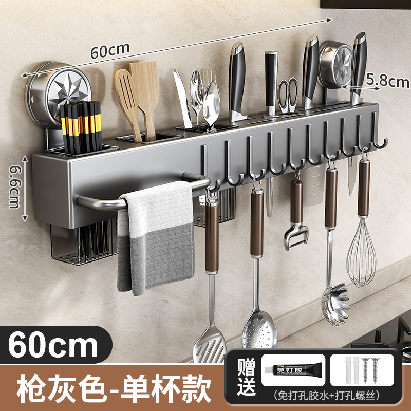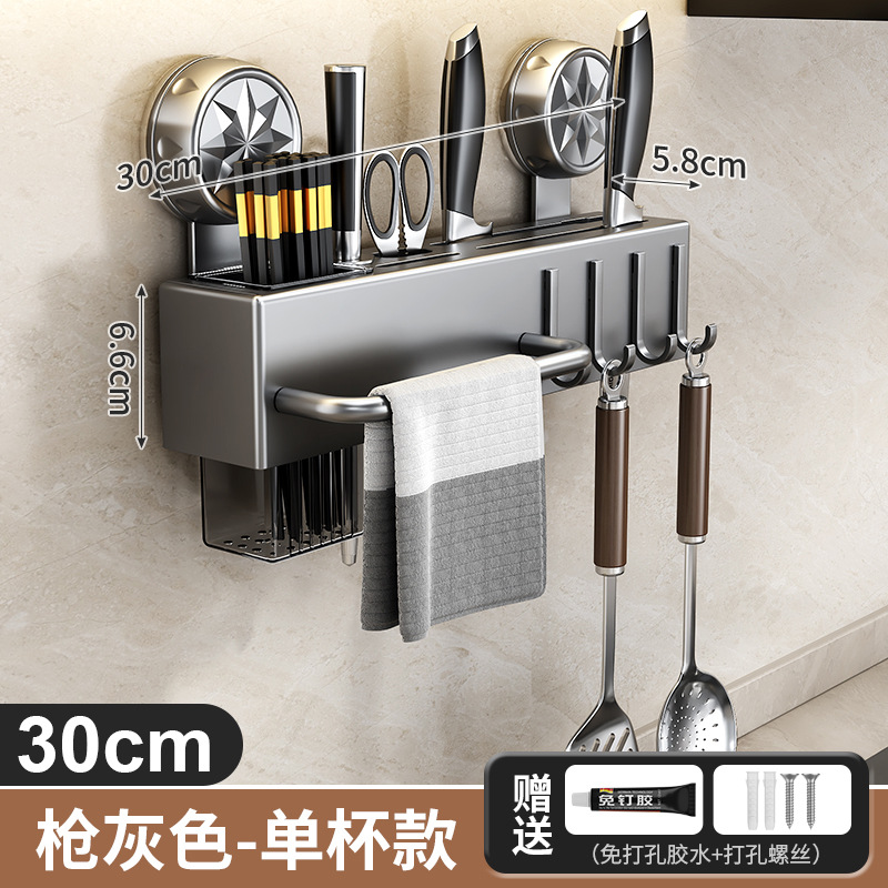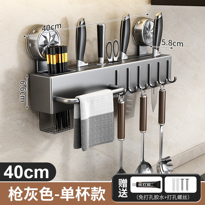 • 흡착컵 칼꽂이 - 건그레이 40cm (젓가락통 1개 + 고리 6개 포함)