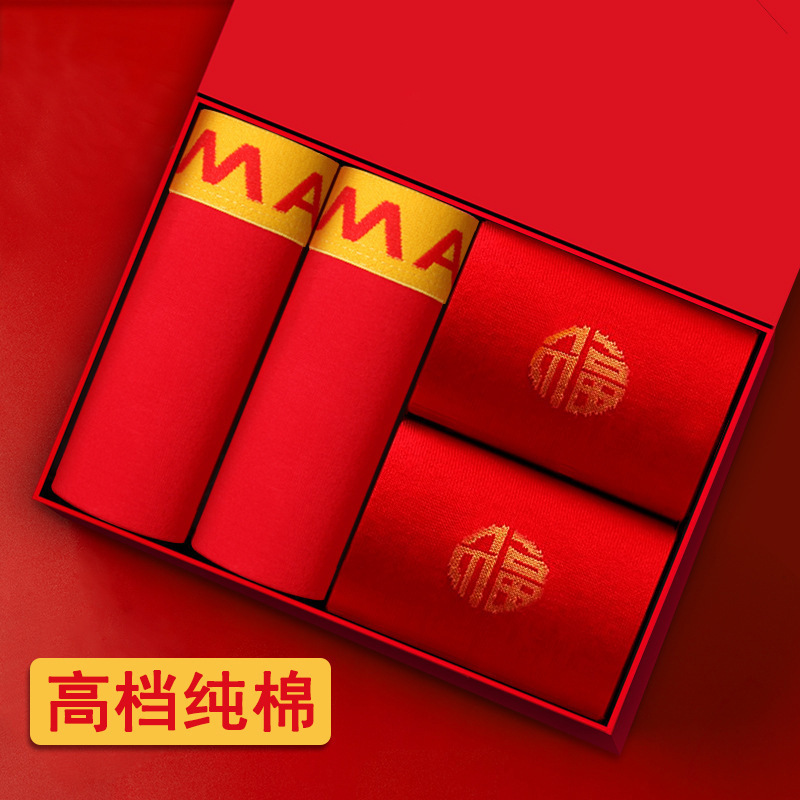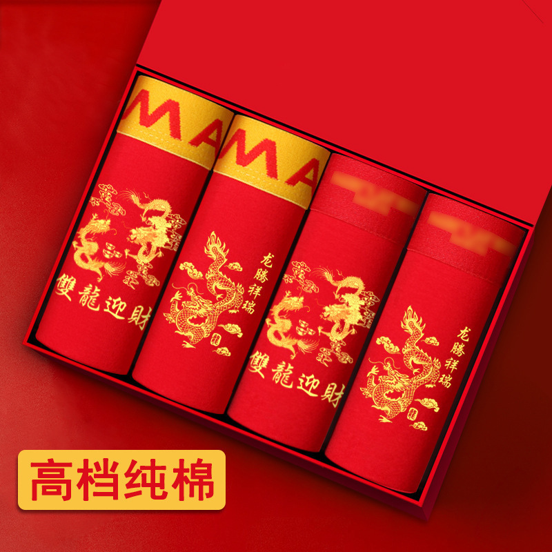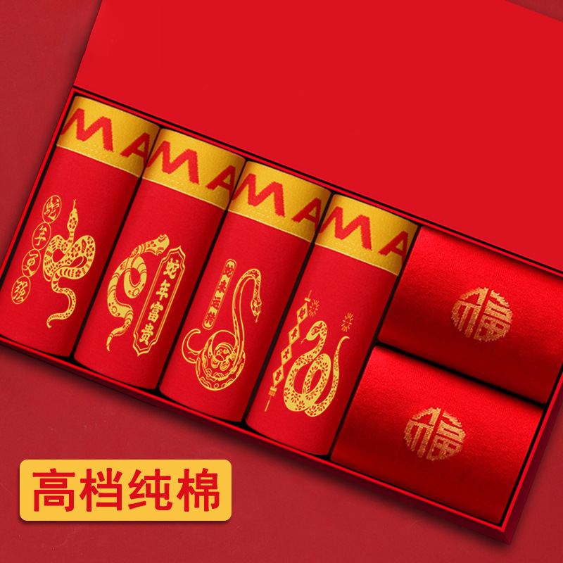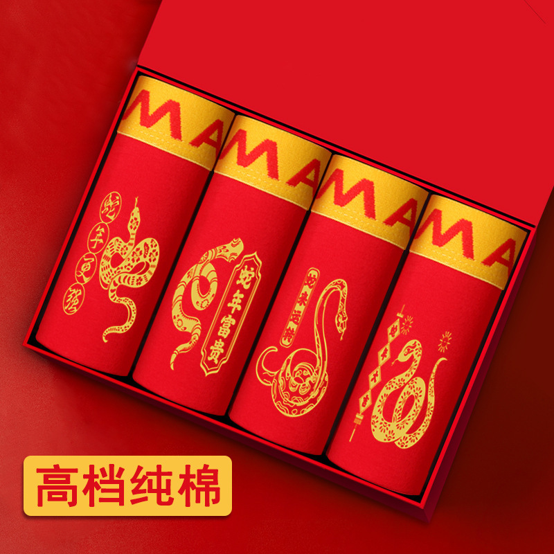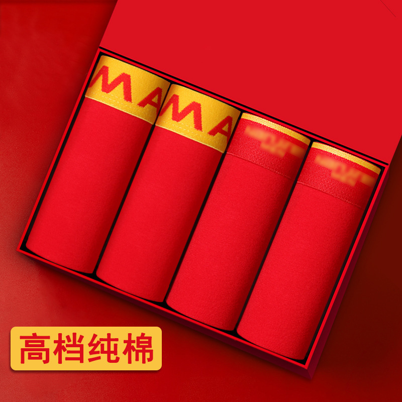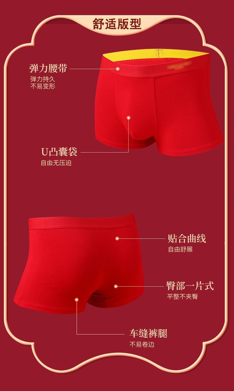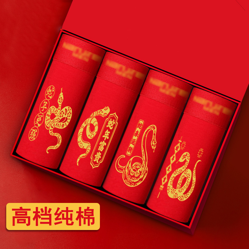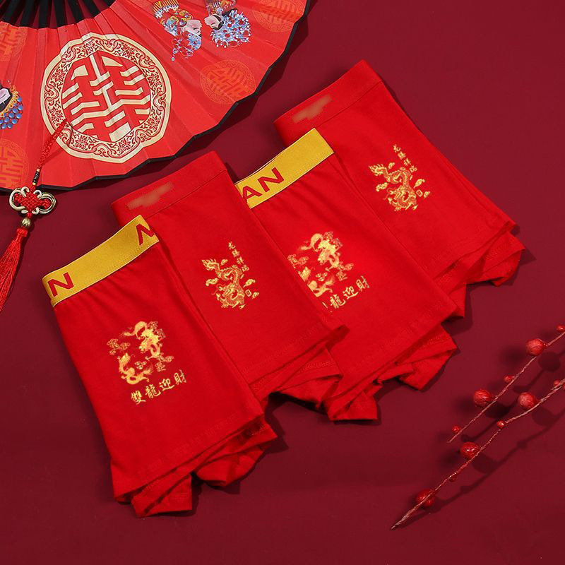 남성 속옷, 남성용 뱀띠 순면 사각팬티, 큰 빨간색 웨딩 사각팬티, 새로운 스타일스토어 가기