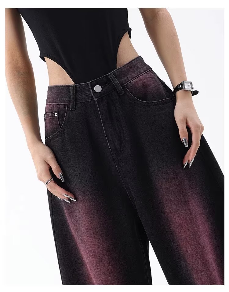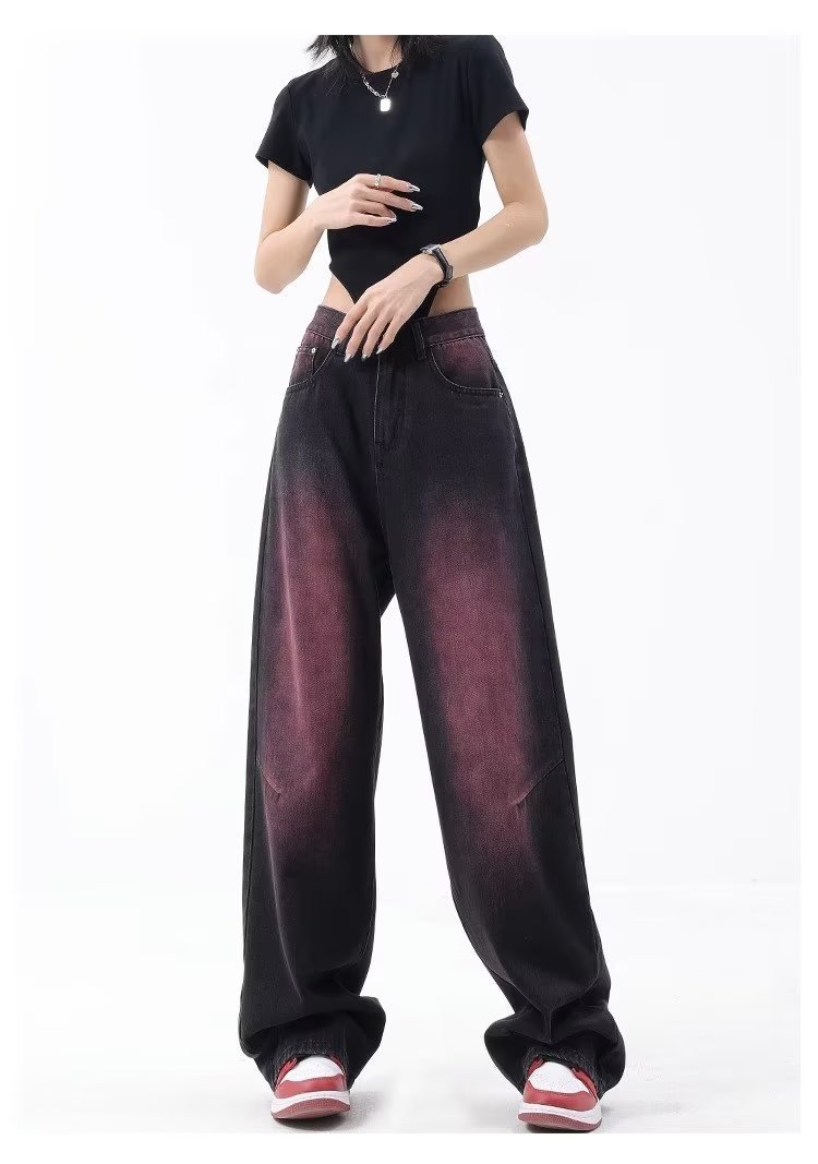 미국 복고풍 봄과 여름 새로운 낙서 워시 워터 청바지 여성 복고풍 디자인 센스 스트레이트 다리 와이드 다리 바지