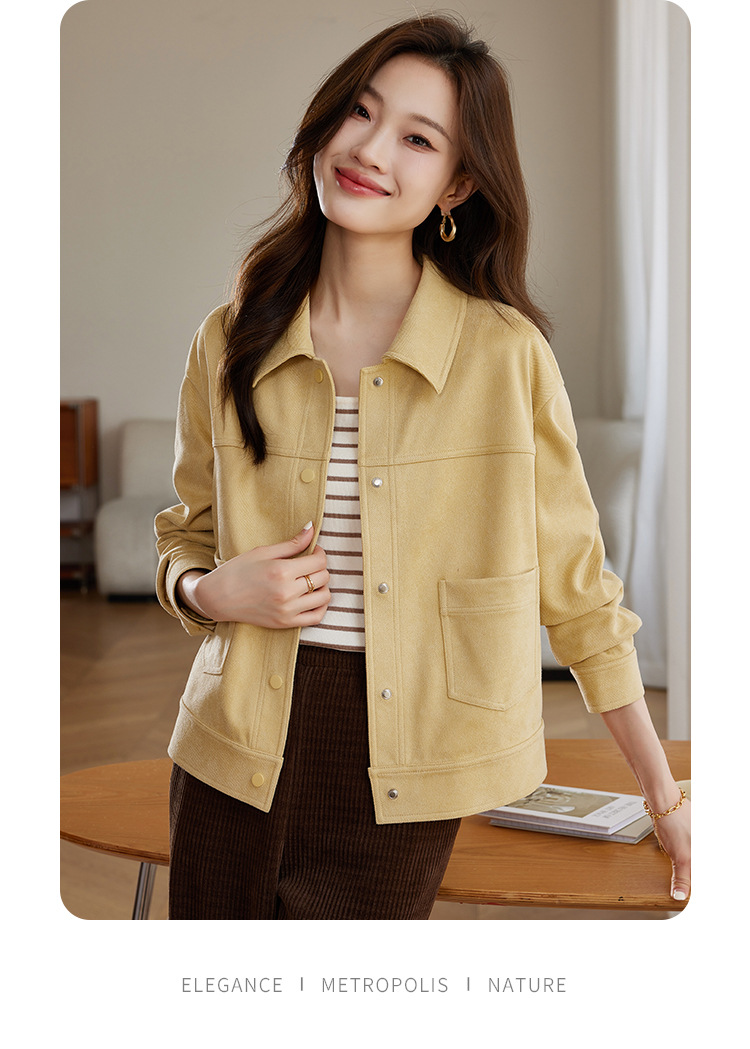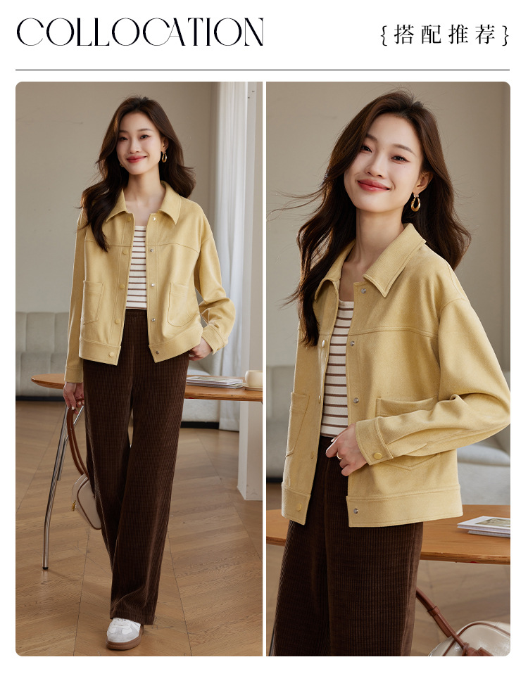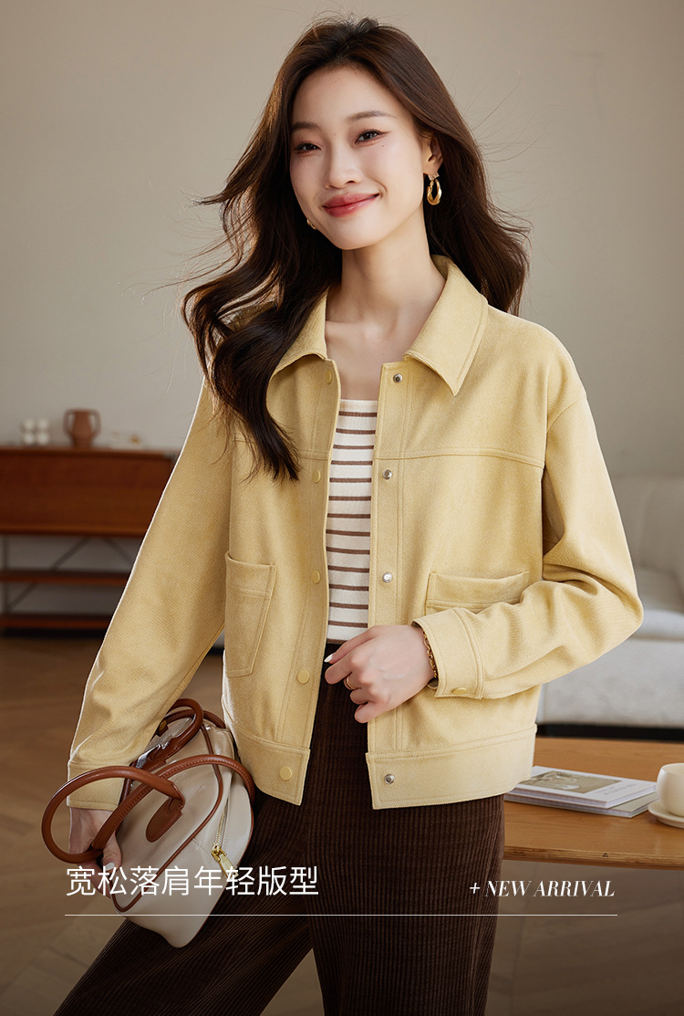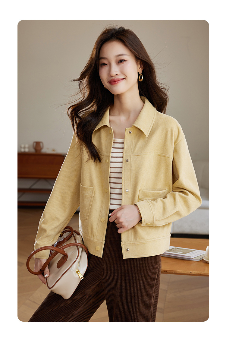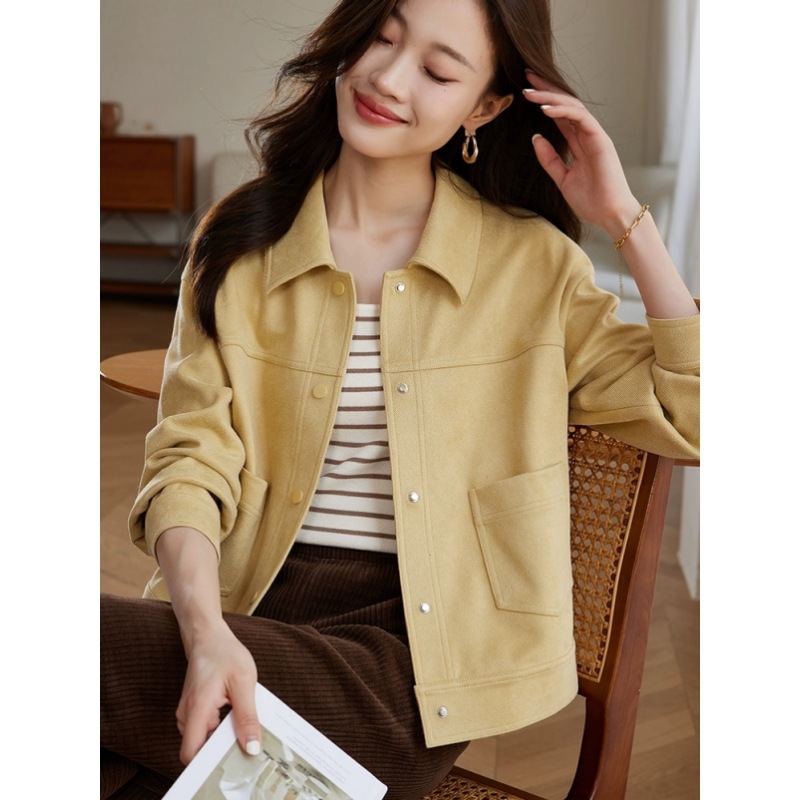 소프트 왁스 스웨이드 옷깃 재킷 여성 가을 · 겨울 새 올해 인기 쇼트 바이커 자켓 탑