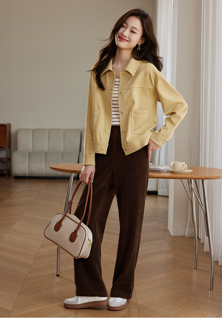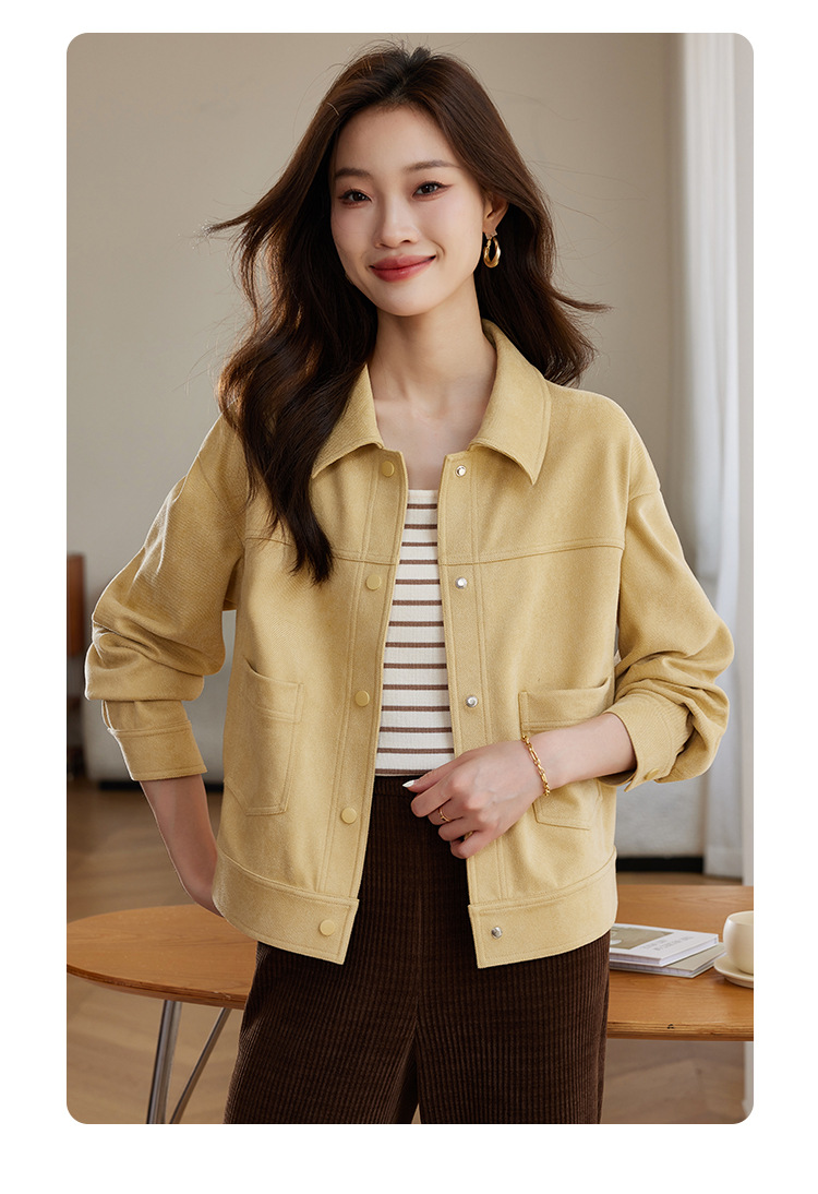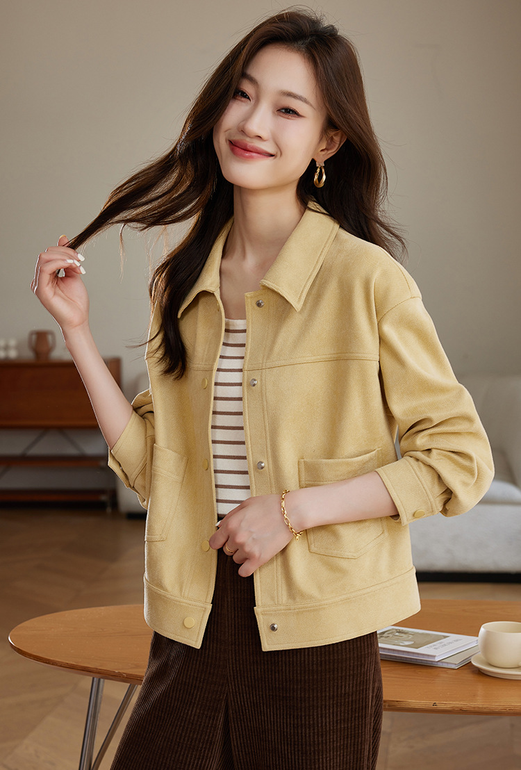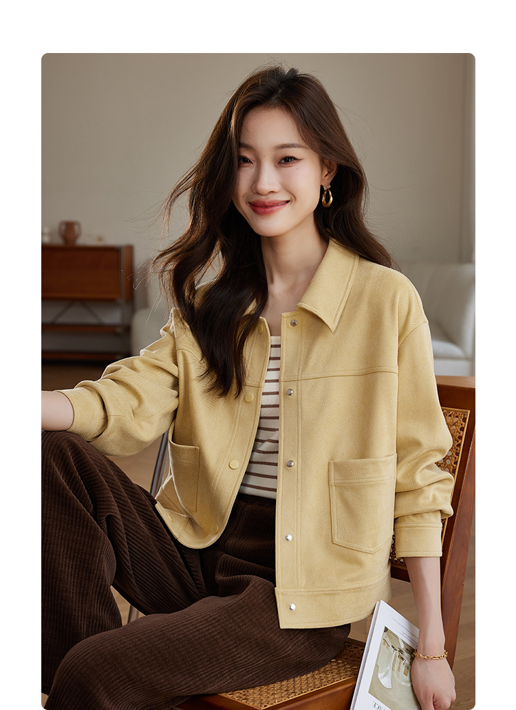 소프트 왁스 스웨이드 옷깃 재킷 여성 가을 · 겨울 새 올해 인기 쇼트 바이커 자켓 탑