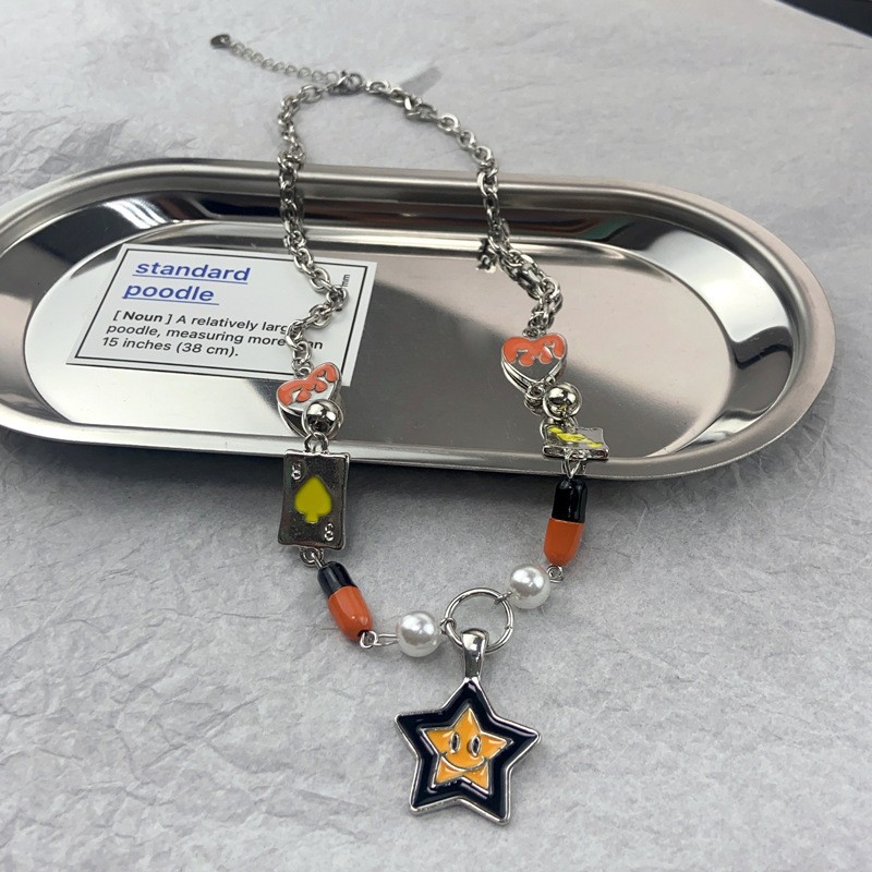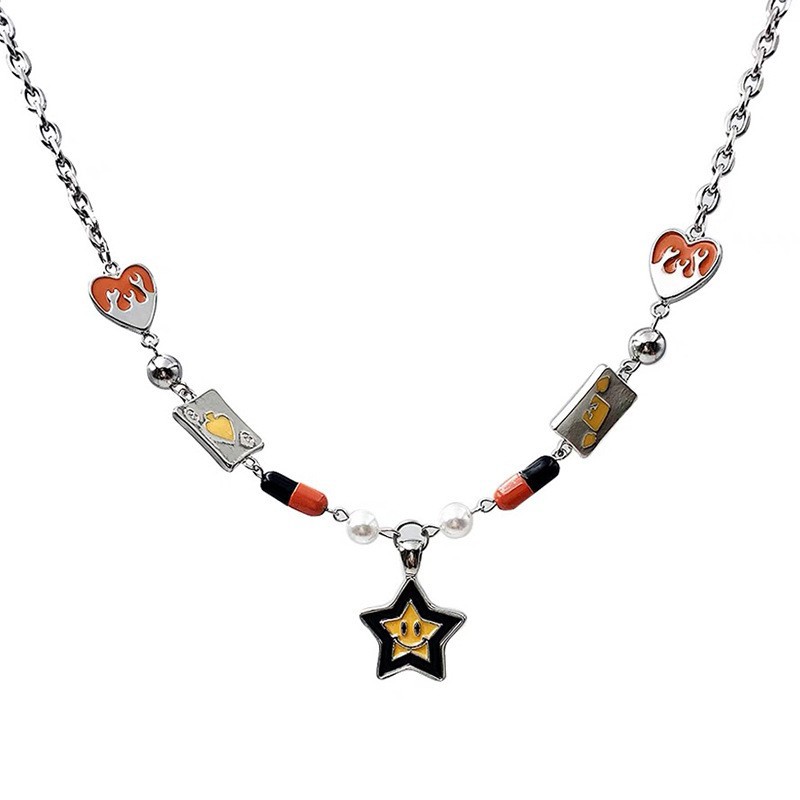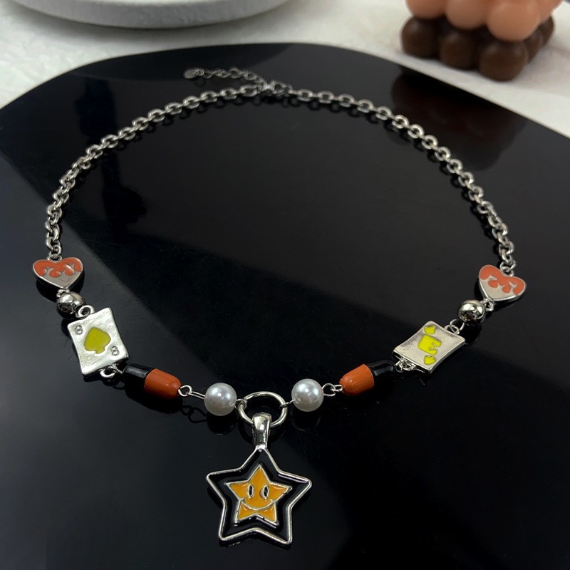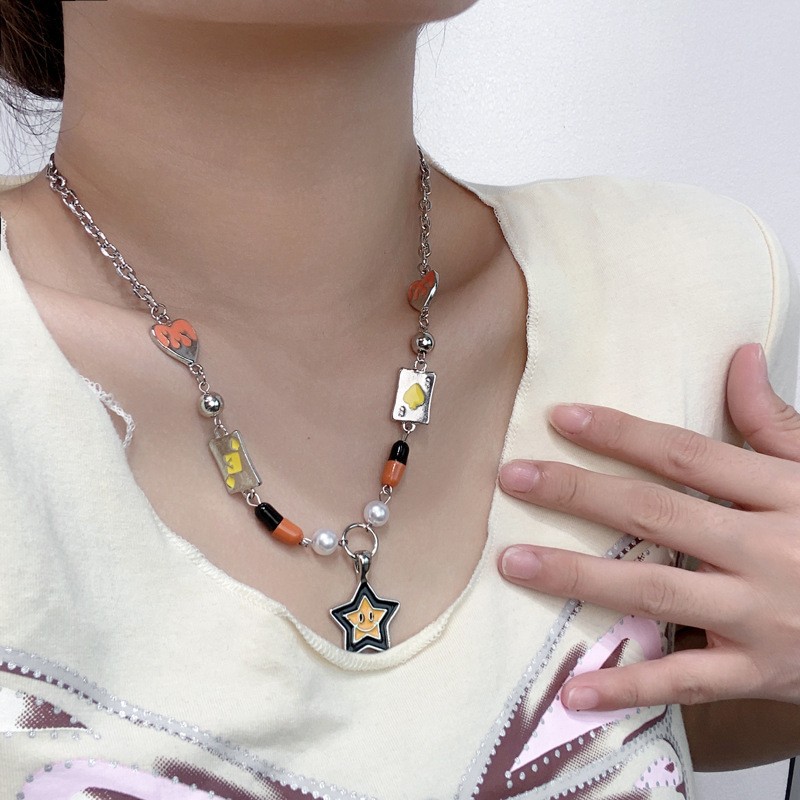 남성과 여성을위한 도파민 스마일리 럭키 스타 바느질 목걸이 작은 신선한 하이 엔드 센스 힙합 패션 올 매치 모직 체인스토어 가기