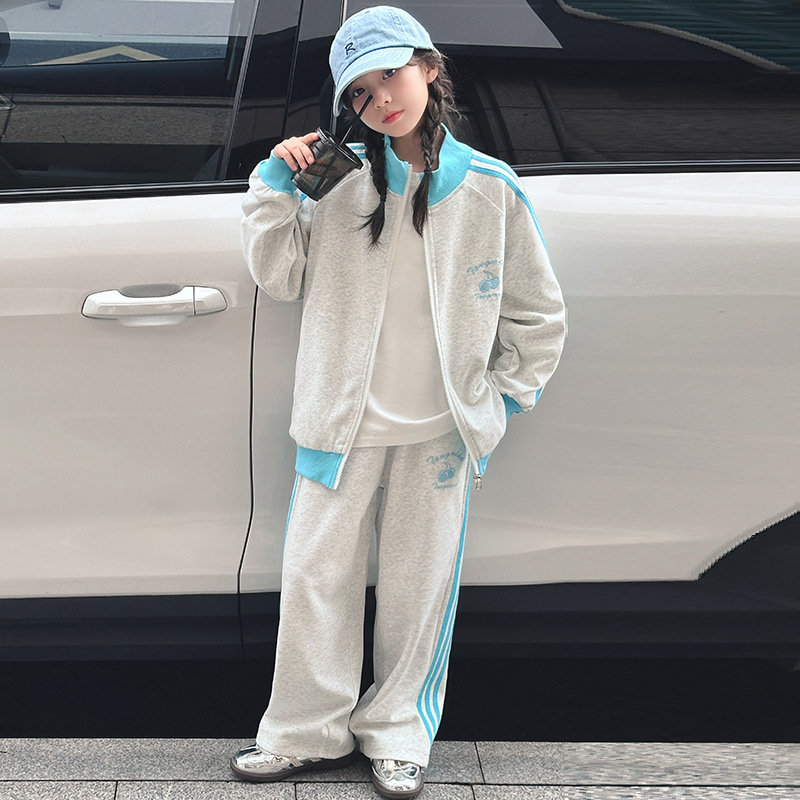 소녀 세트 봄과 가을 2025 새로운 어린이 봄 서양식 유행 미국 스웨트 셔츠 캐주얼 스포츠 투피스 세트