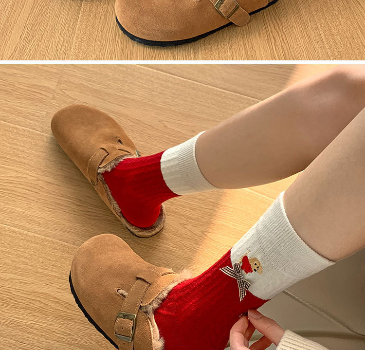 레드 양말 여성의 새해 양말 미드 튜브 코튼 양말 Ins 트렌디 자수 베어 천 라벨 새해 트위스트 레드 양말스토어 가기