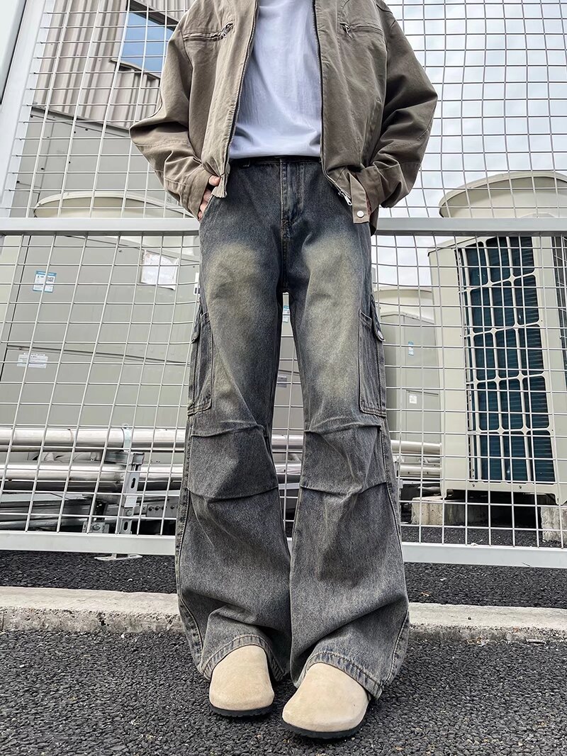 아메리칸 스타일 대형 포켓 오버롤 청바지 남성 봄과 가을 패션 브랜드 청소년 낙하산 캐주얼 바지 느슨한 넓은 다리 바지스토어 가기