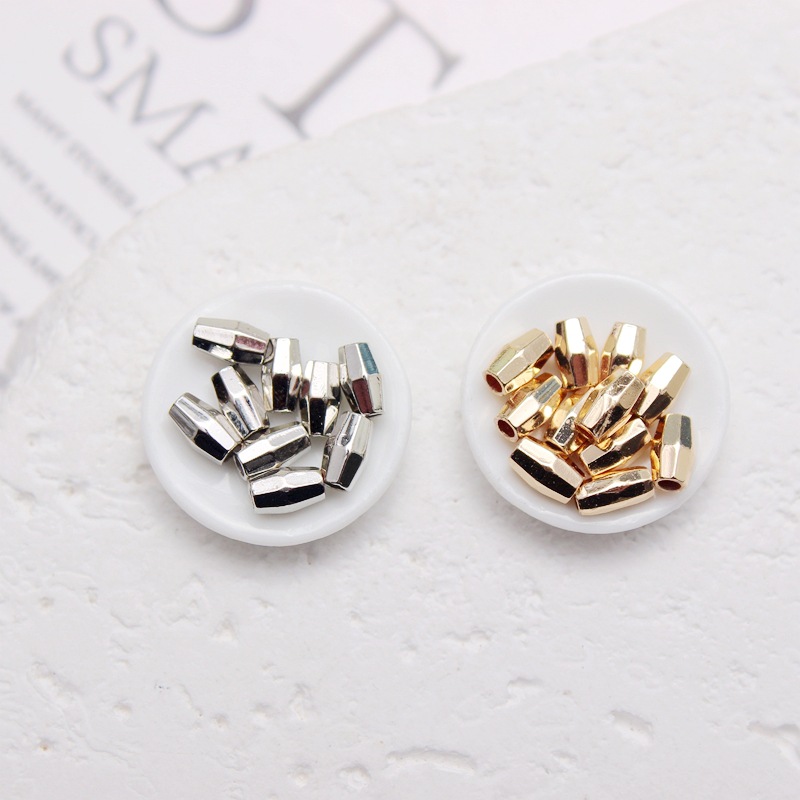 14K包金保色白K通孔米珠切面大孔小桶珠DIY手链项链手工饰品配件