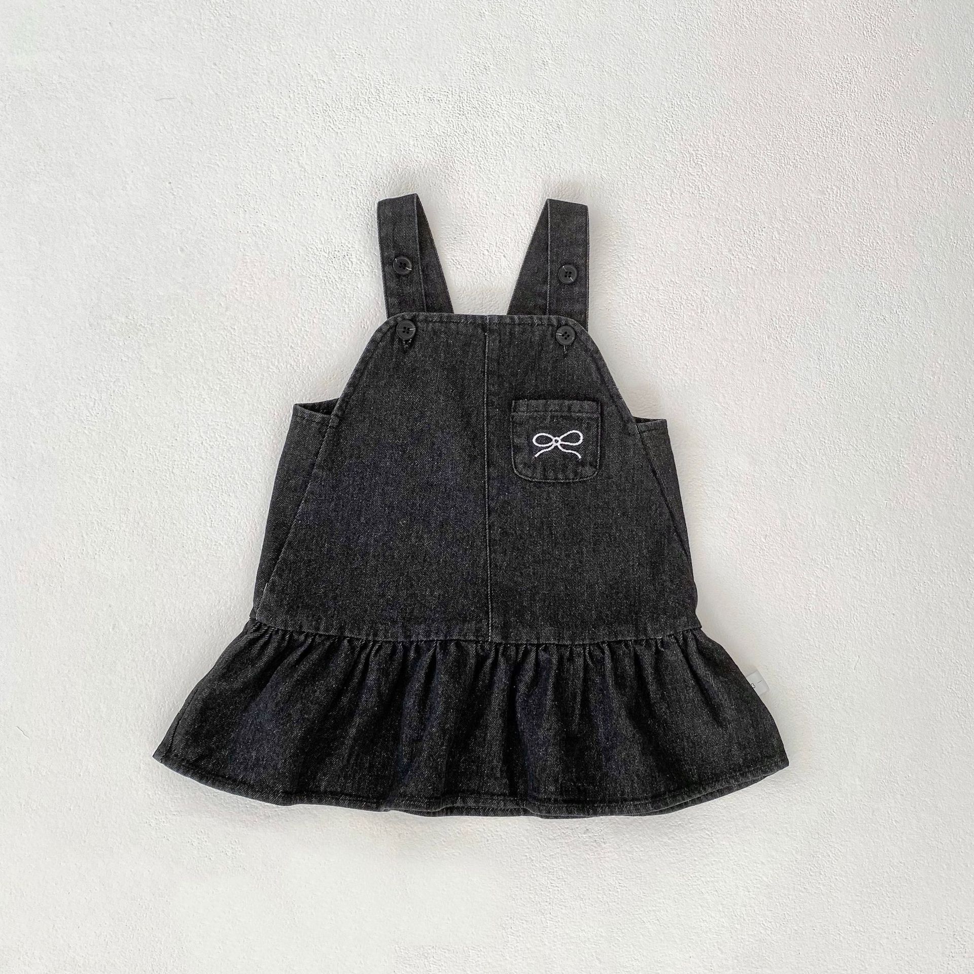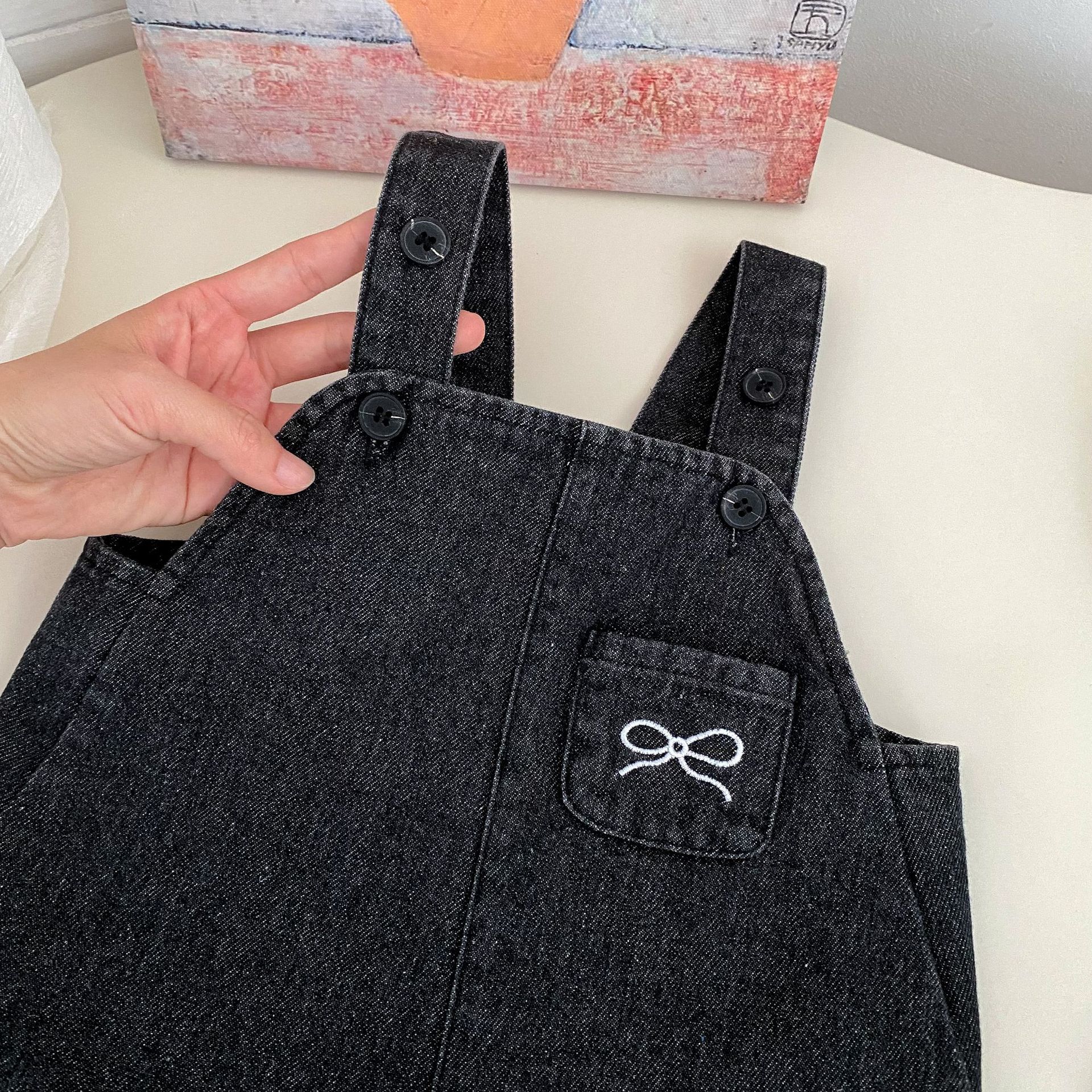 Ins 봄 새로운 아기 소녀 달콤한 간단한 활 데님 스트랩 드레스 인형 칼라 베이스 셔츠 투피스 세트스토어 가기