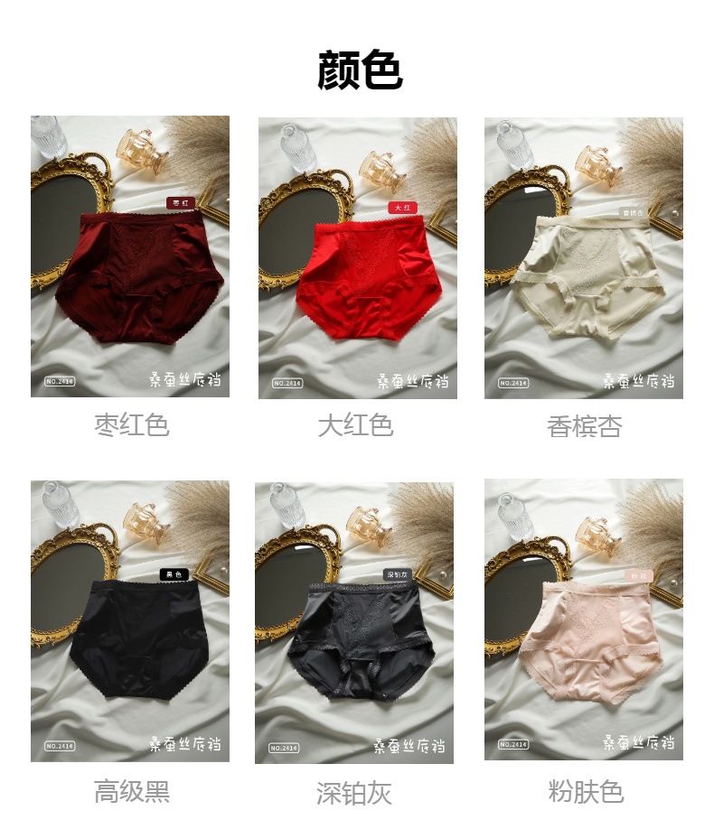 인기 프렌치 스타일 고급 레이스 새틴 여성용 하이웨이스트 팬티, 복부 보정 및 힙업 효과, 실크 안감, 무봉제 여성용 삼각 팬티