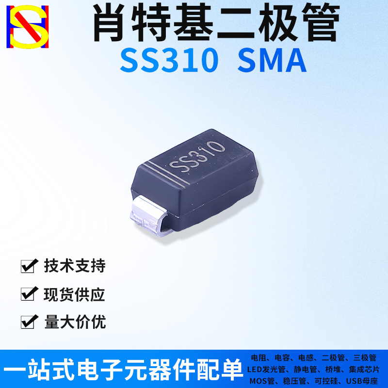 SS310贴片肖特基二极管SMA SR3100 3A/100V一站式电子元器件配单