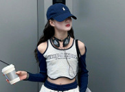 소녀의 봄 2025 년 대비 컬러 스티칭 스트레이트 팬츠 아메리칸 스타일 핫 걸 스트리트 댄스 슬리브 카미솔
