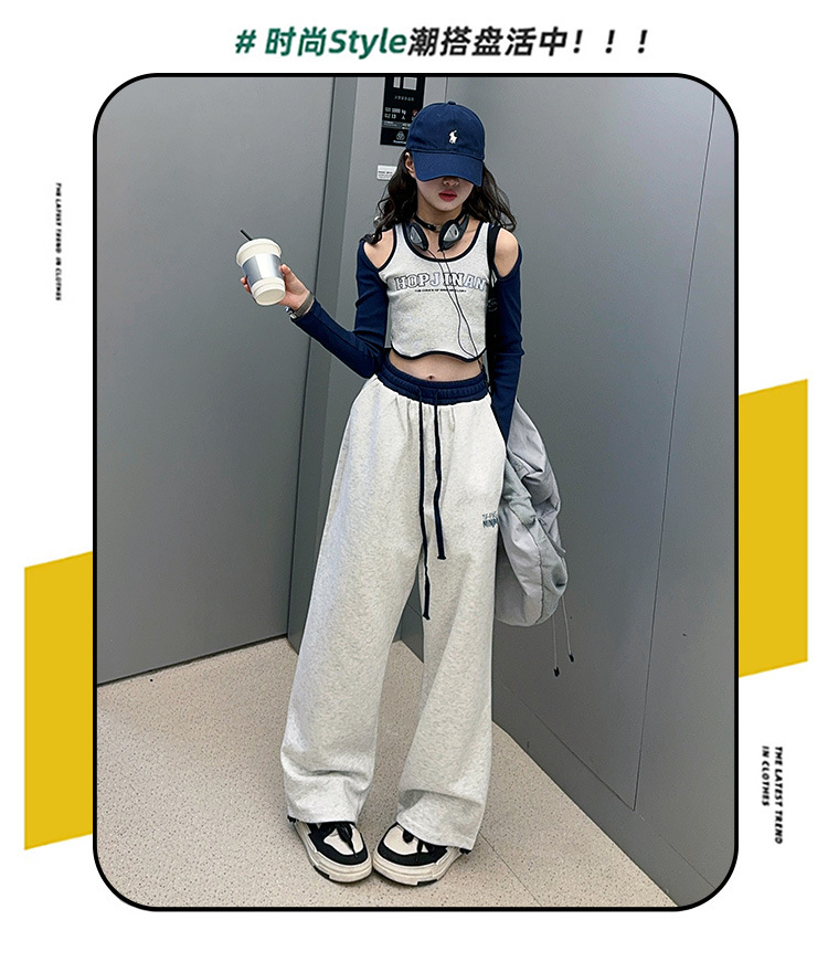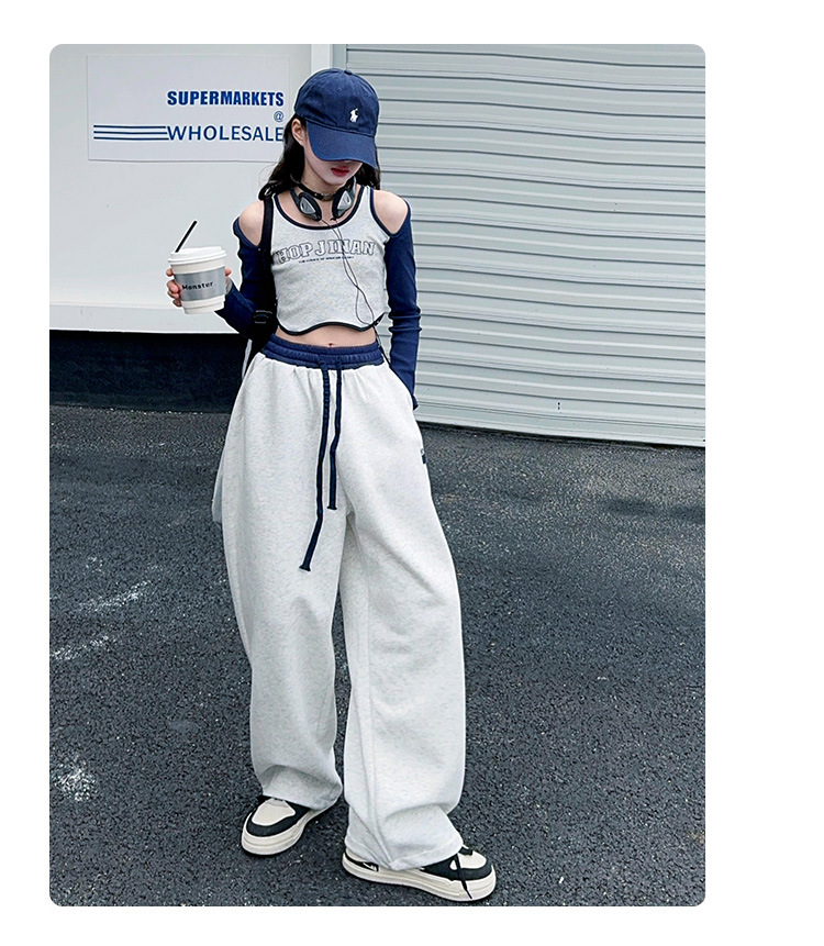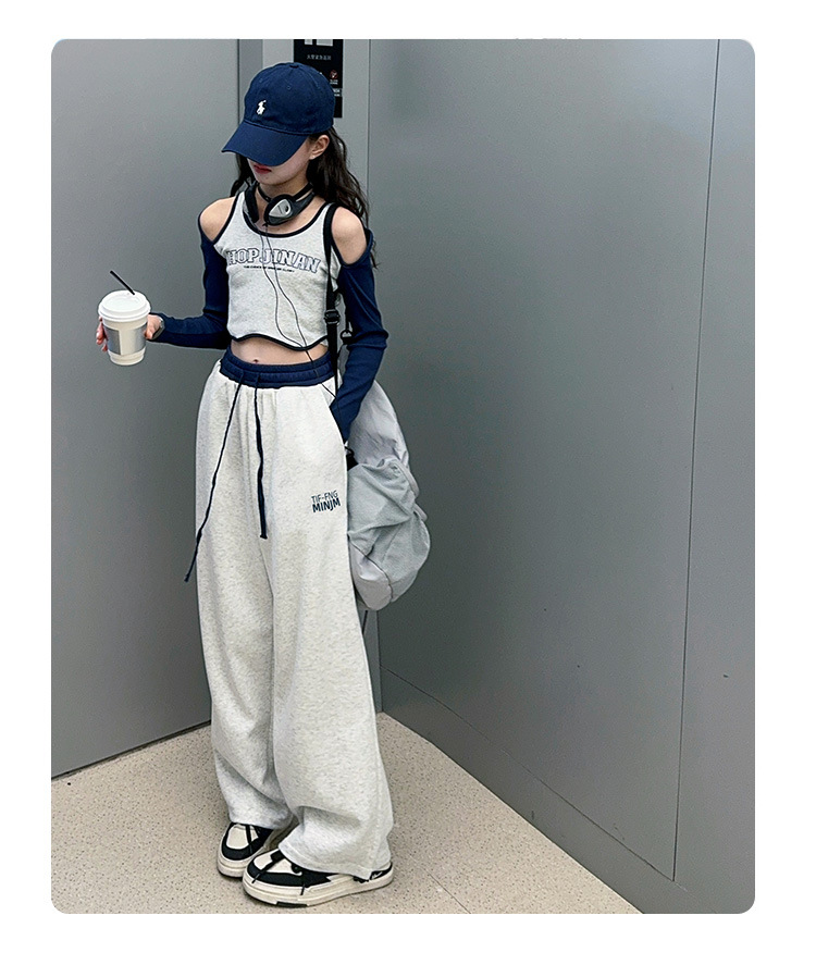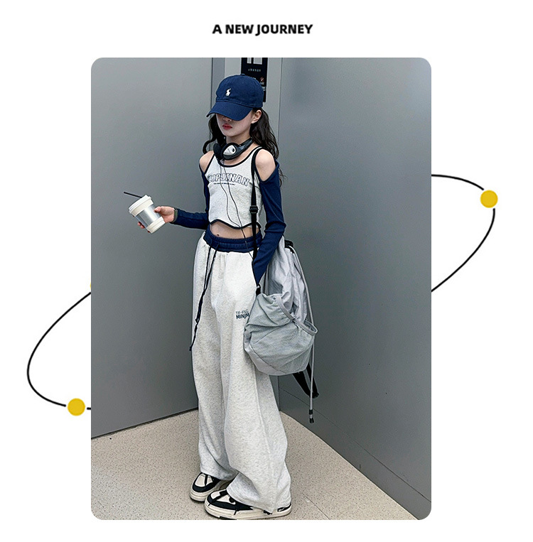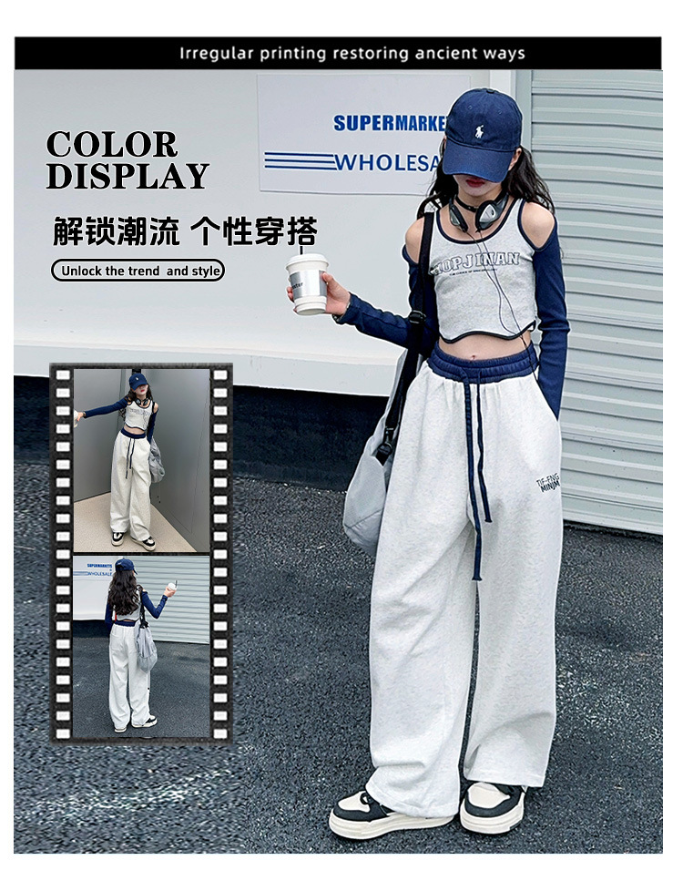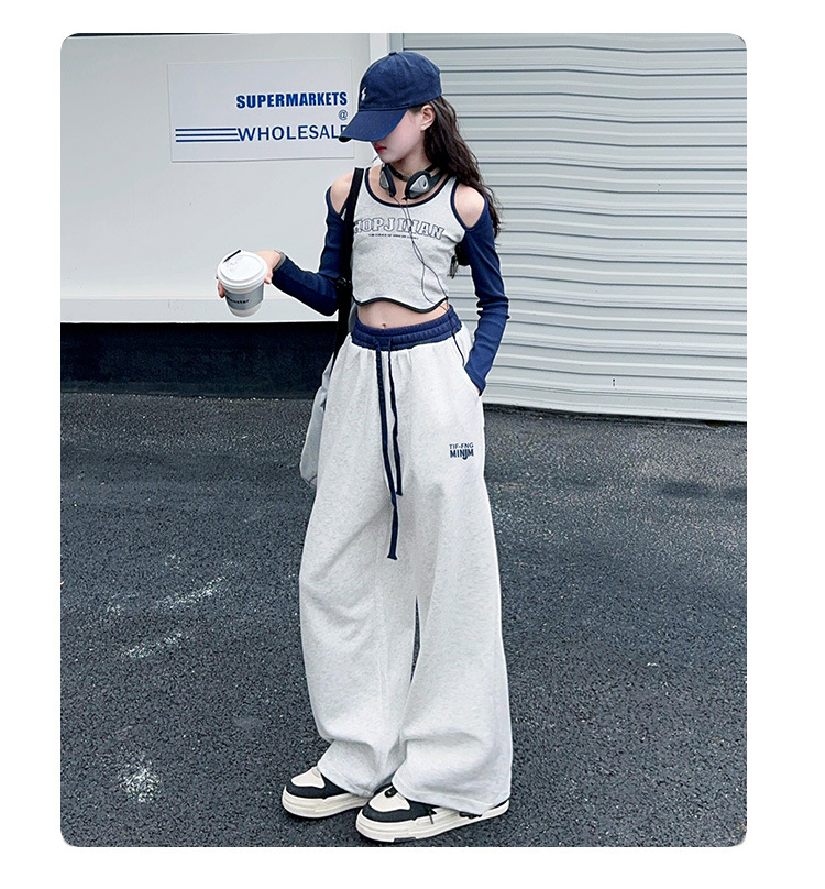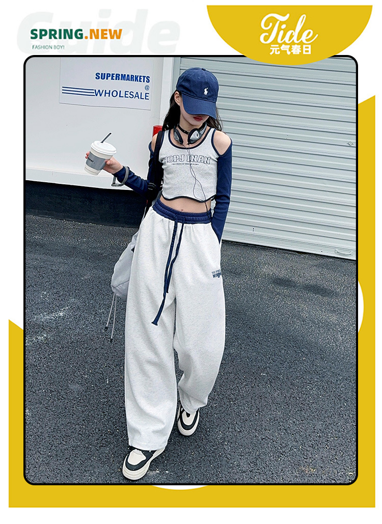소녀의 봄 2025 년 대비 컬러 스티칭 스트레이트 팬츠 아메리칸 스타일 핫 걸 스트리트 댄스 슬리브 카미솔스토어 가기