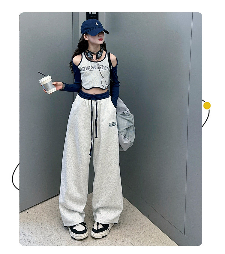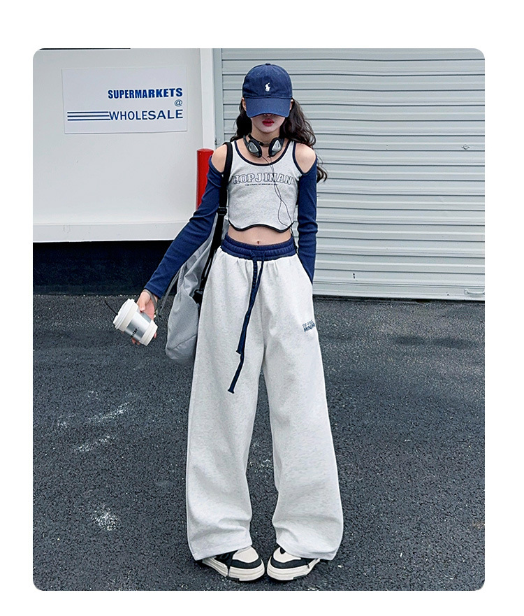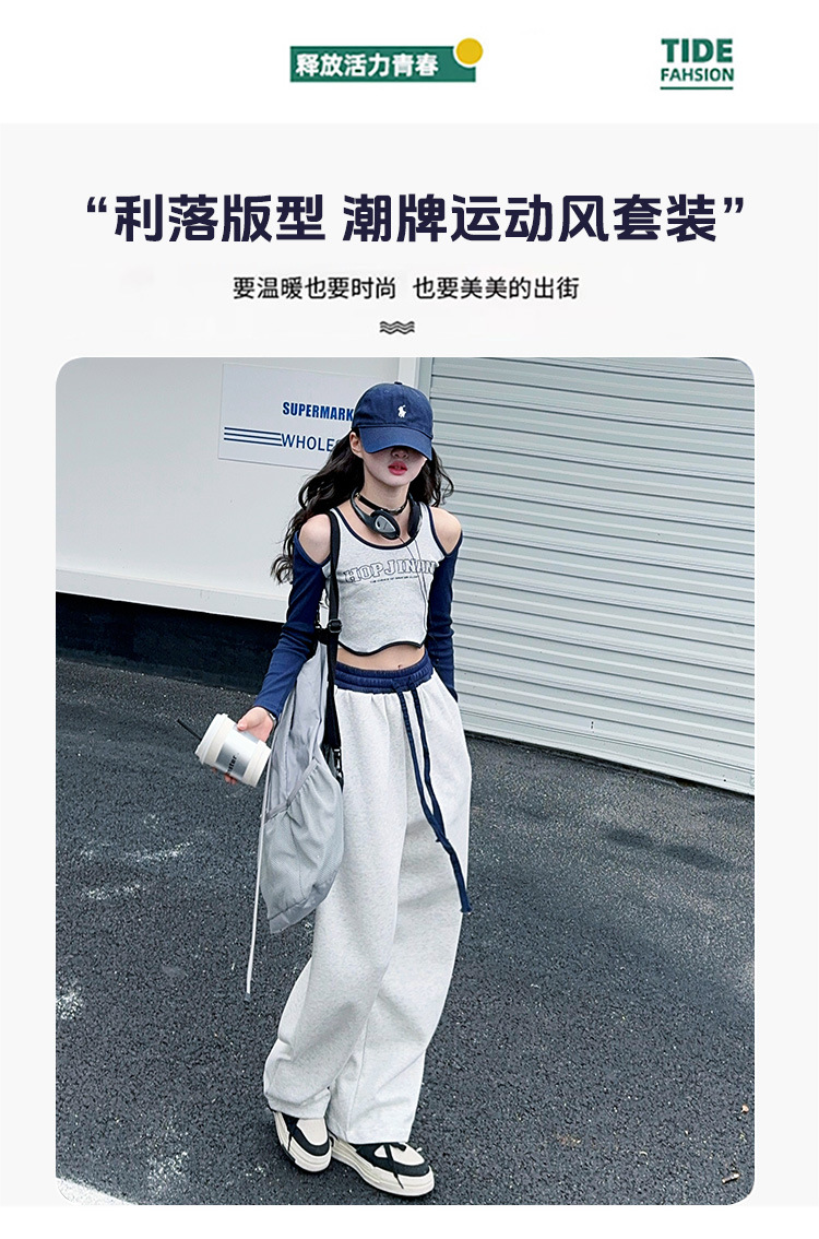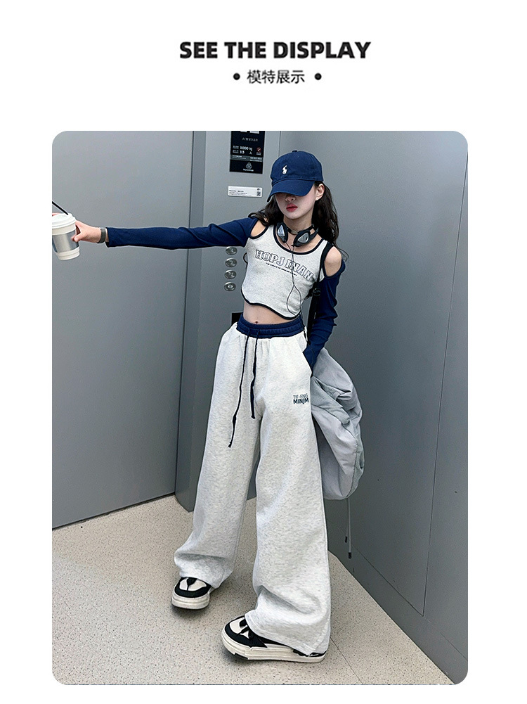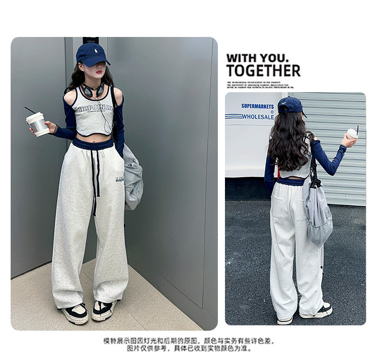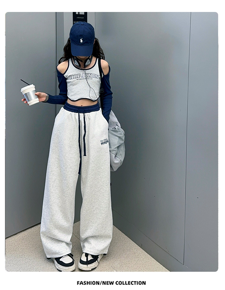 소녀의 봄 2025 년 대비 컬러 스티칭 스트레이트 팬츠 아메리칸 스타일 핫 걸 스트리트 댄스 슬리브 카미솔스토어 가기