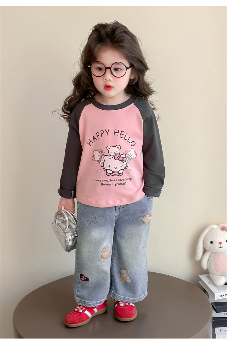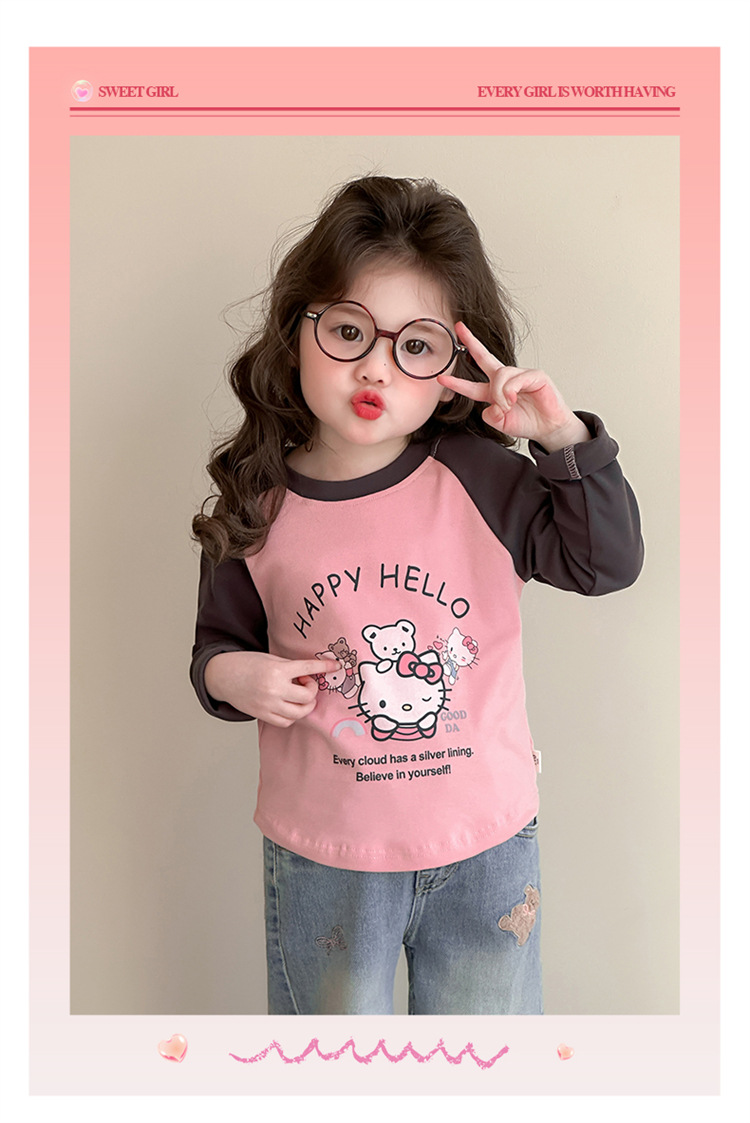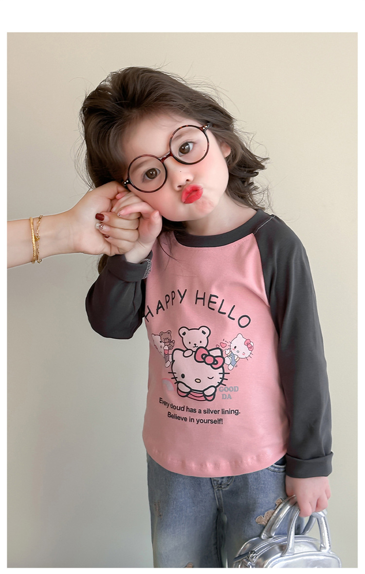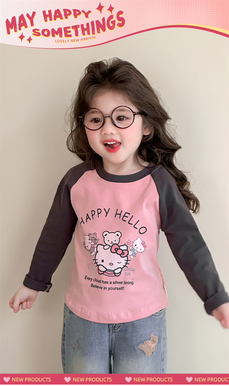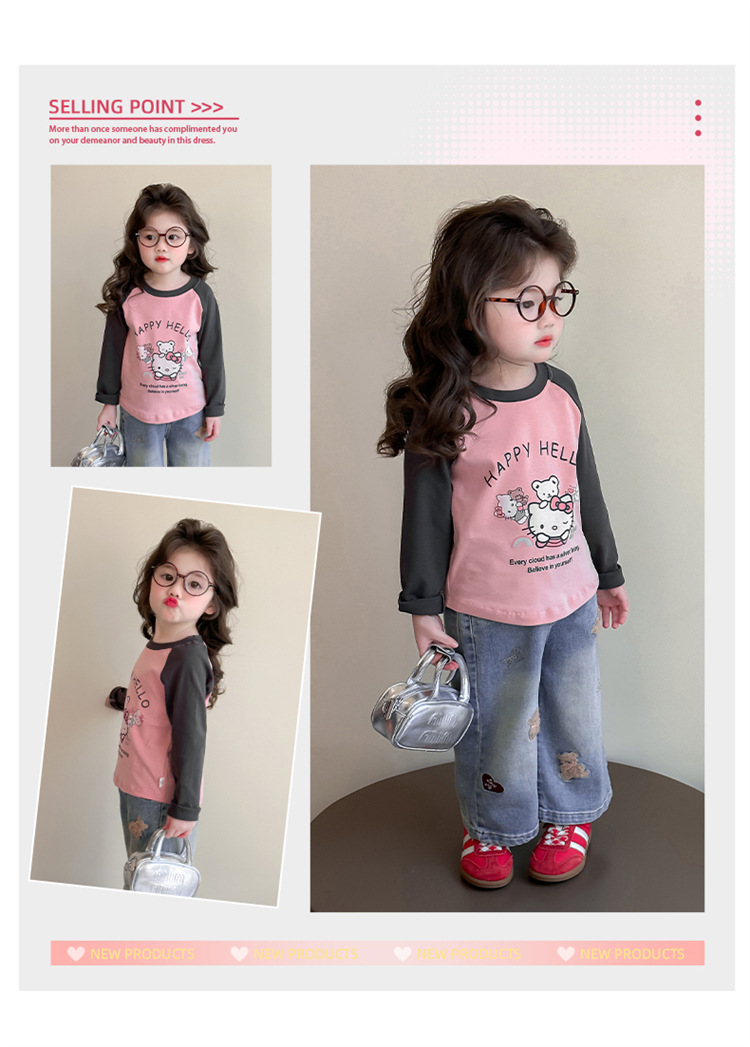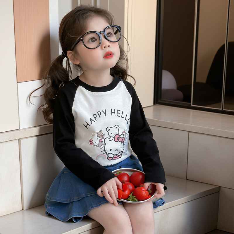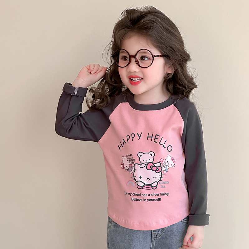 2026년 봄 여아용 만화 프린트 래글런 슬리브 티셔츠, 새로운 스타일의 베이스 레이어, 아동복, 유아용 상의, 아동복 도매스토어 가기