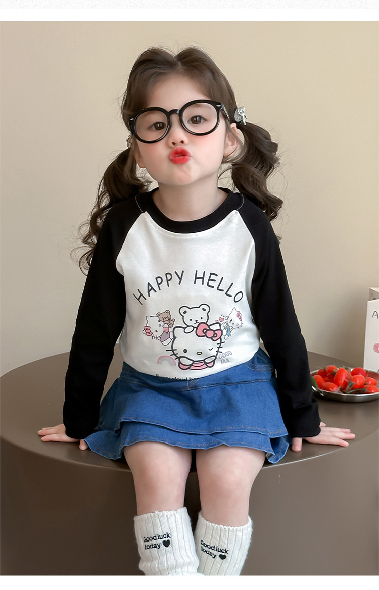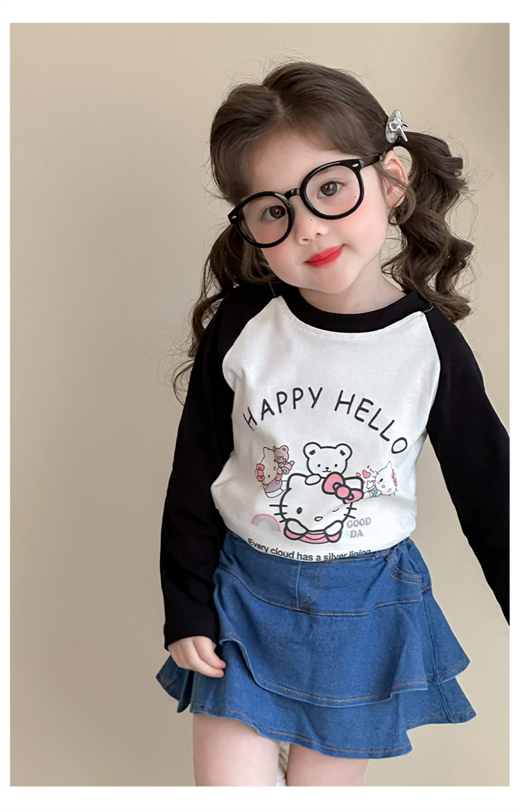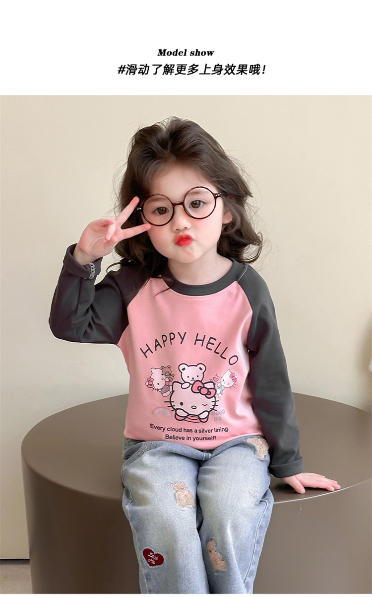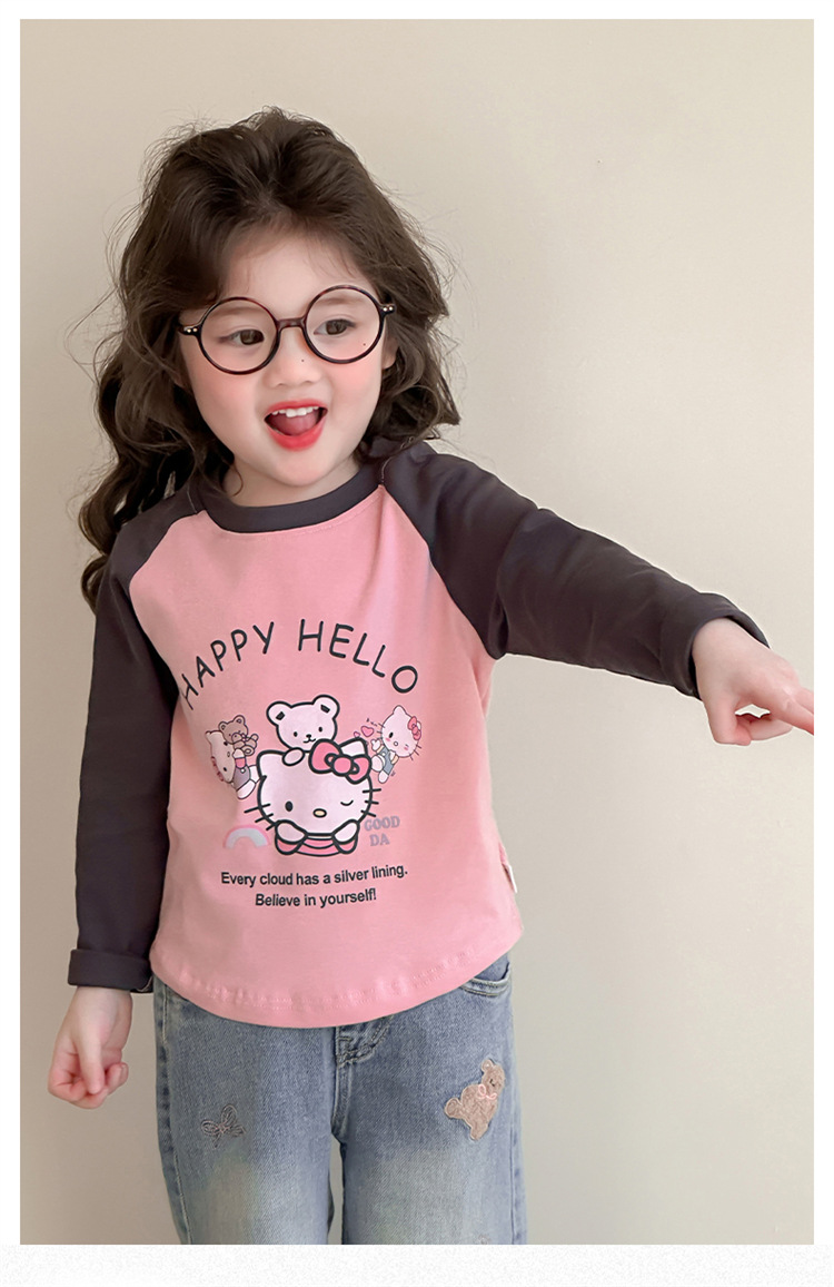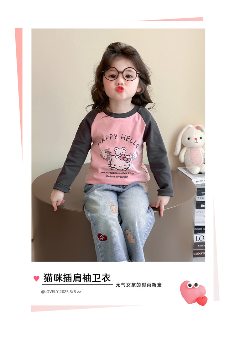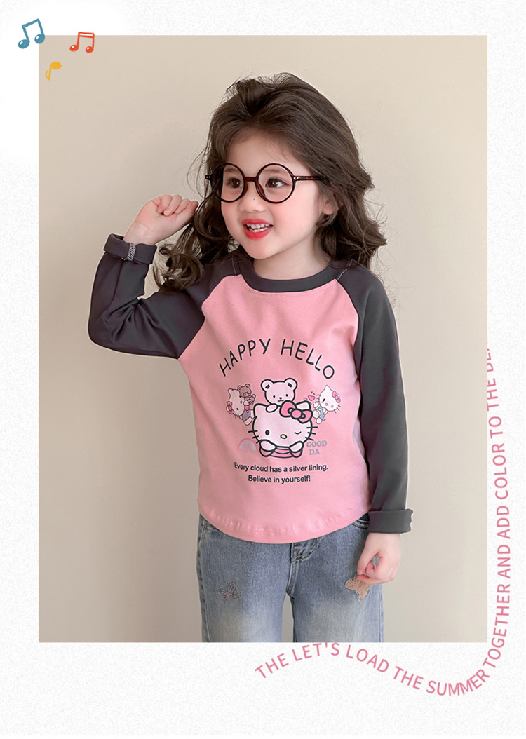 2026년 봄 여아용 만화 프린트 래글런 슬리브 티셔츠, 새로운 스타일의 베이스 레이어, 아동복, 유아용 상의, 아동복 도매스토어 가기