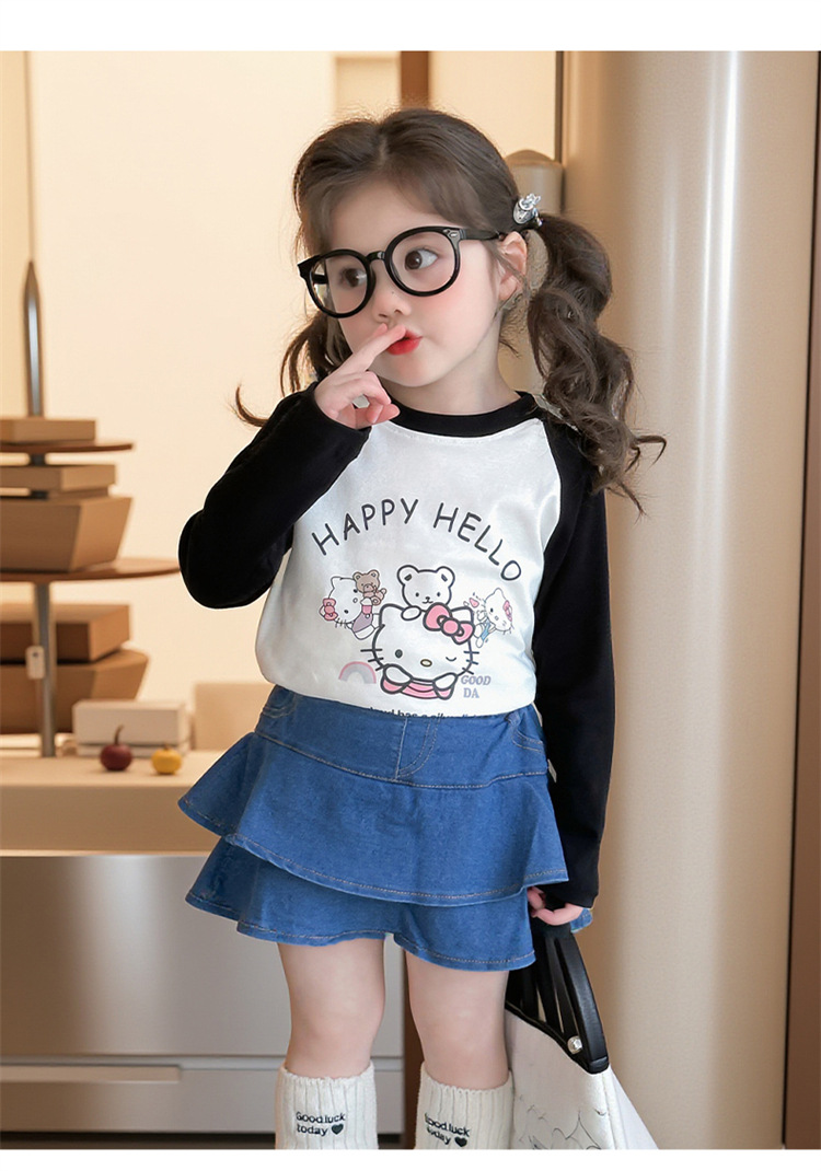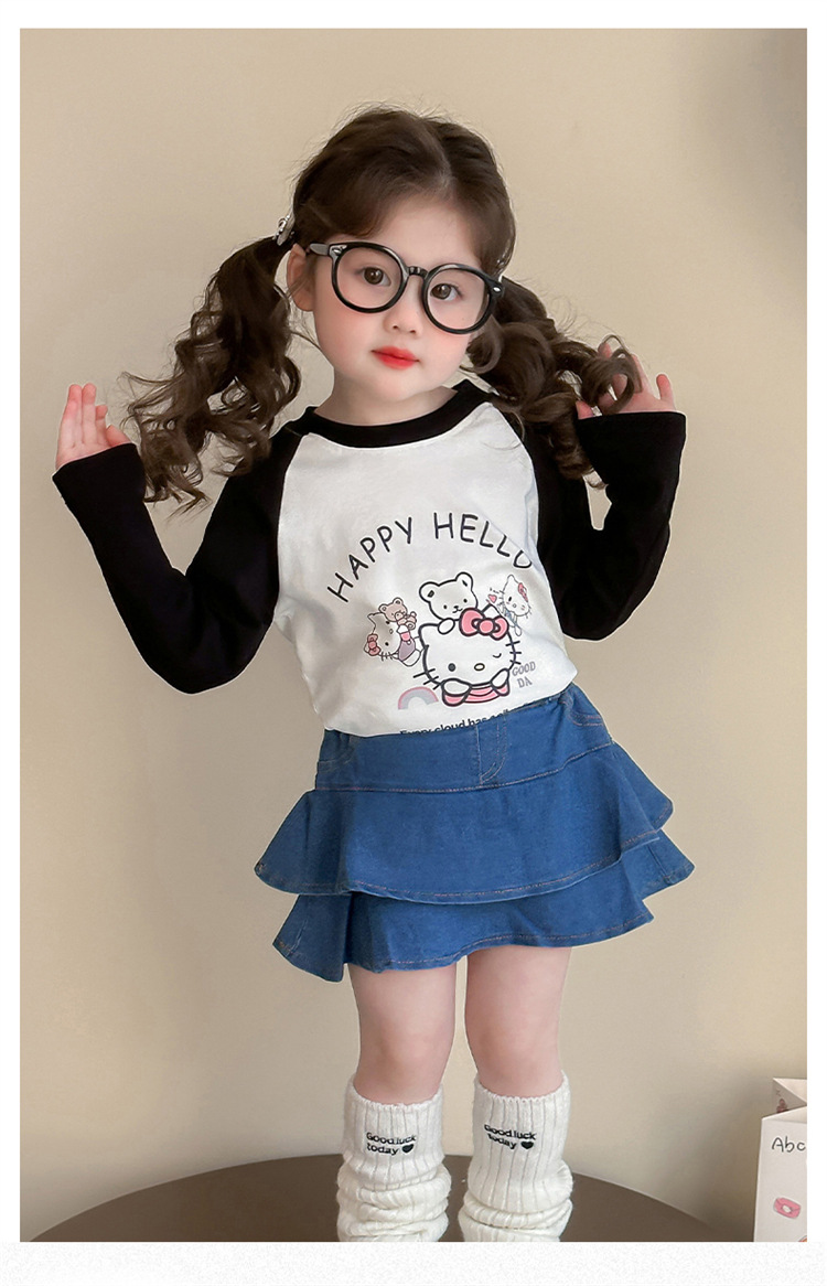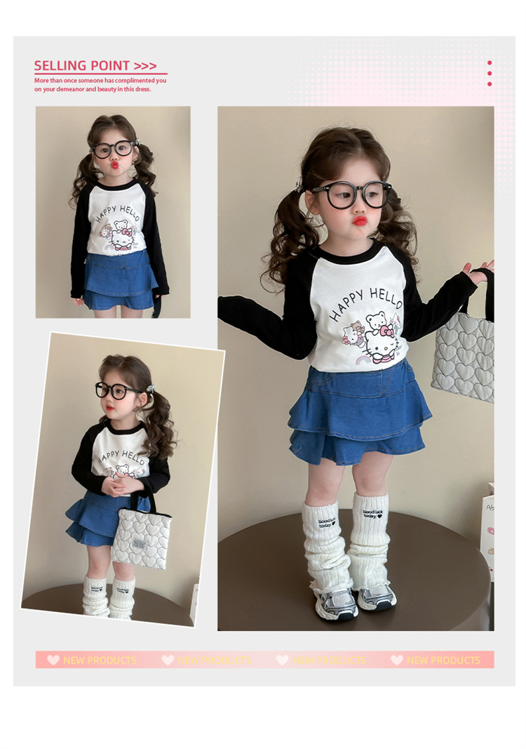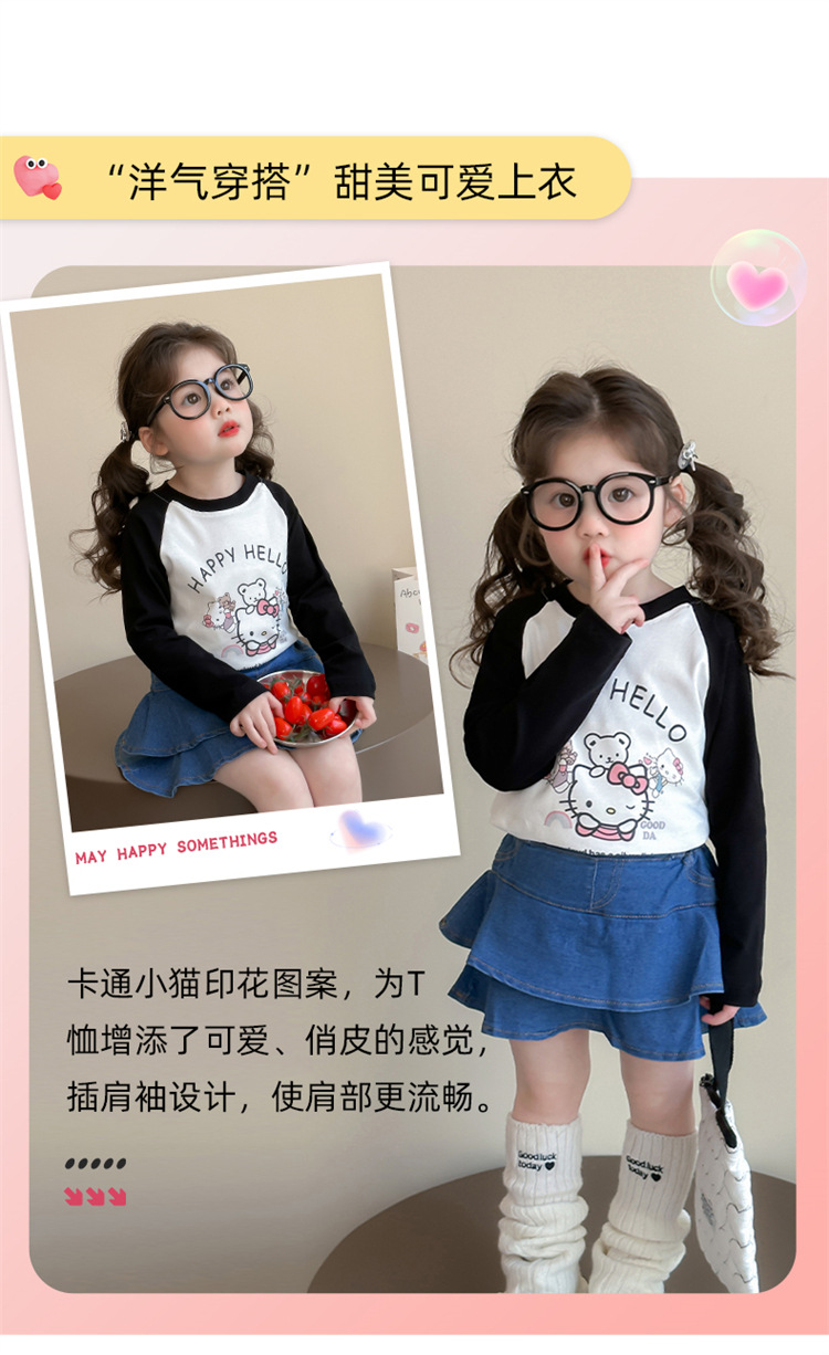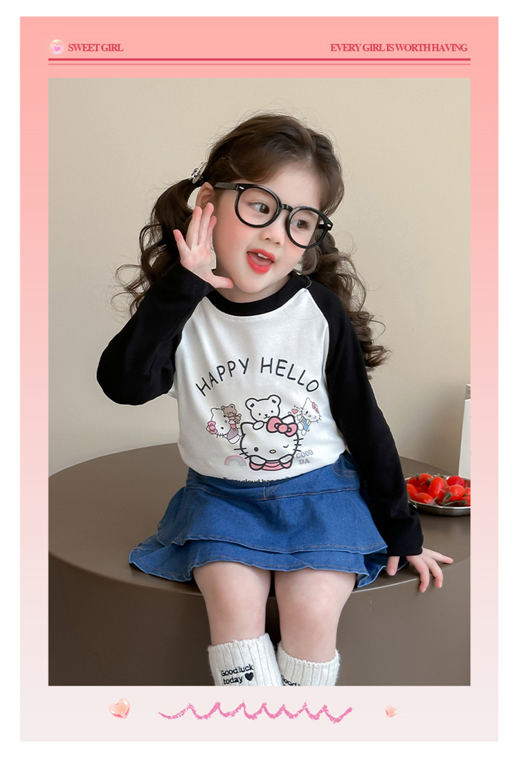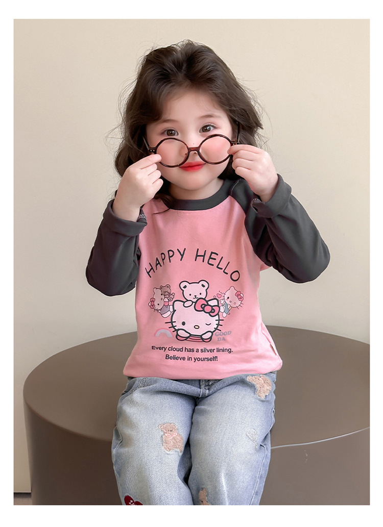 2026년 봄 여아용 만화 프린트 래글런 슬리브 티셔츠, 새로운 스타일의 베이스 레이어, 아동복, 유아용 상의, 아동복 도매스토어 가기