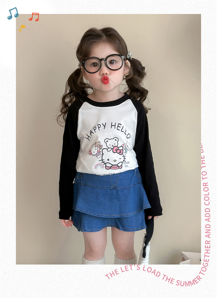 2026년 봄 여아용 만화 프린트 래글런 슬리브 티셔츠, 새로운 스타일의 베이스 레이어, 아동복, 유아용 상의, 아동복 도매