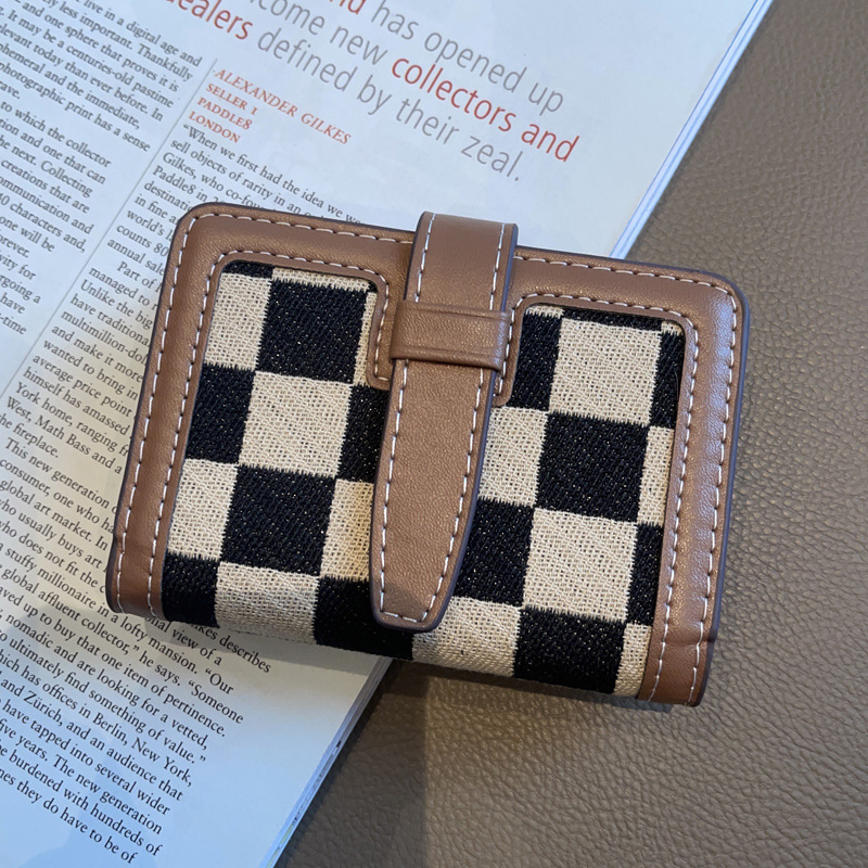 패션 캔버스 ID 가방 2025 새로운 도시 간단한 격자 무늬 인터넷 트렌디 드라이버 라이센스 투인원 카드 가방 클러치 백스토어 가기