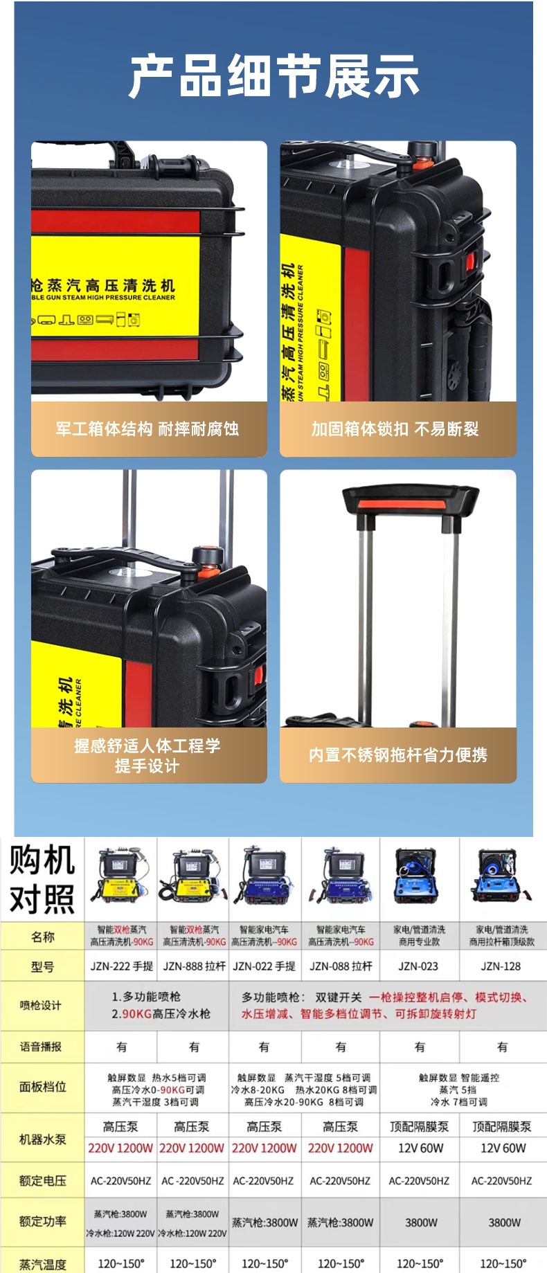 • JY-001 파란색 3500W 화염기 모델에는 스팀 3m 튜브만 있고 에어컨 커버가 함께 제공됩니다.