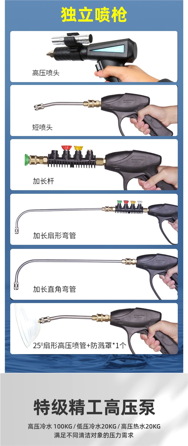 • JY-002E 블루 스프레이 건 스위치 4m 스팀 파이프 스팀 냉온수 펄스 오존 5-in-1