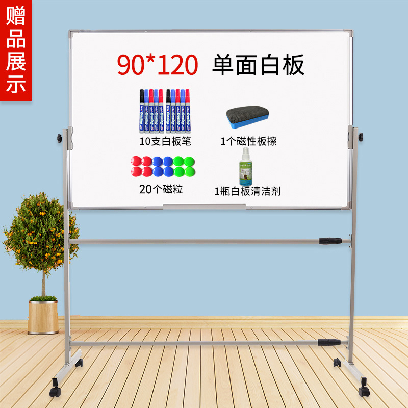 • 두꺼운 90*120 더블 화이트보드 + 블랙 스탠드 + 자석 20개 + 펜 10개 + 지우개 1개 + 클리너 1개