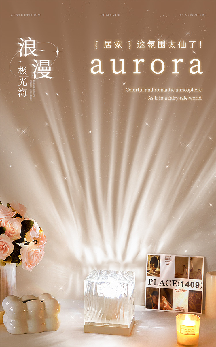 물 리플 오로라 스타 프로젝션 밤 빛 침실 침실 분위기 감정적 인 테이블 램프 여성 장식 고급 새로운 스타일스토어 가기