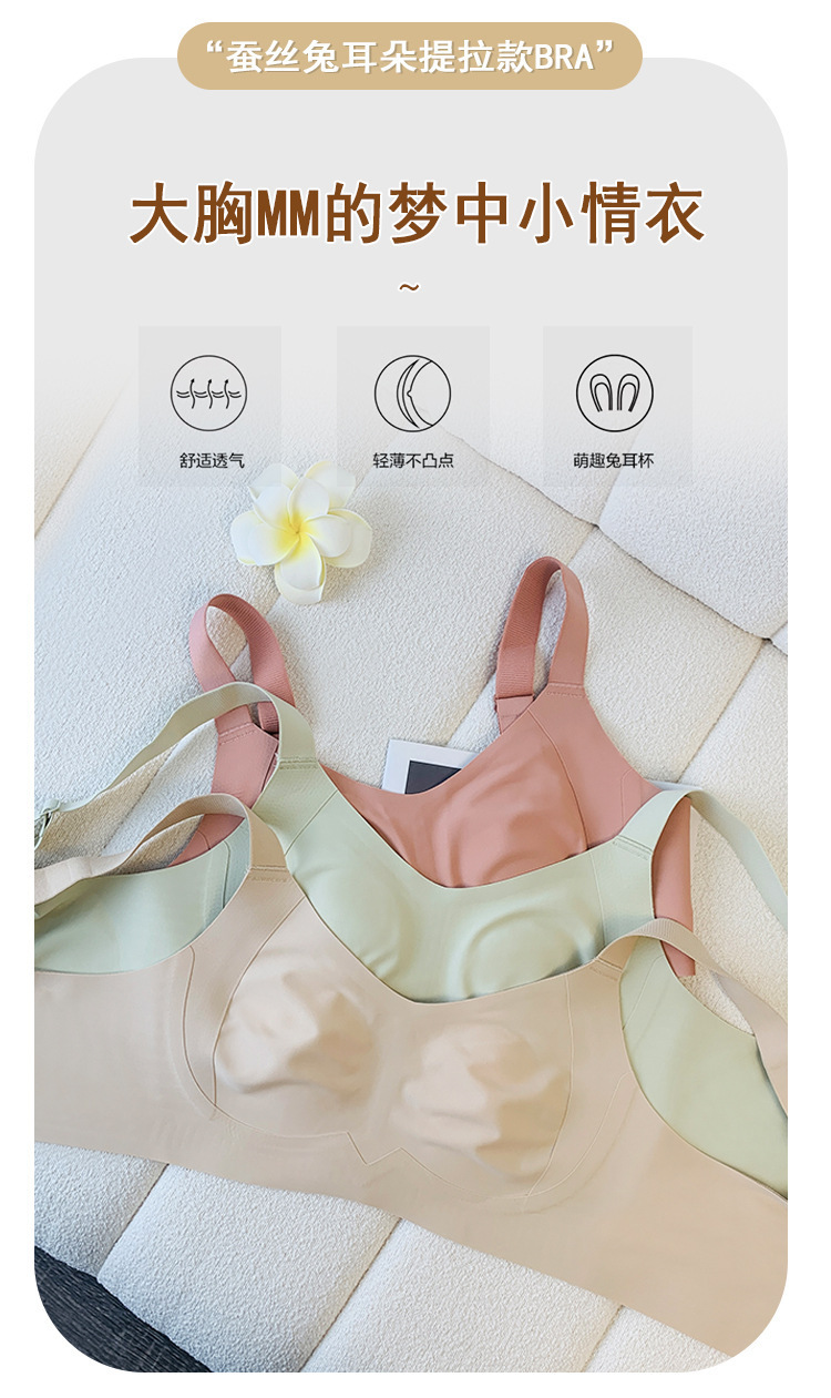 추적없는 큰 가슴 작은 속옷 여성의 비 강철 링 처짐 방지 윗부분 지원 토끼 귀 컵 범프 편안한 통기성 브래지어