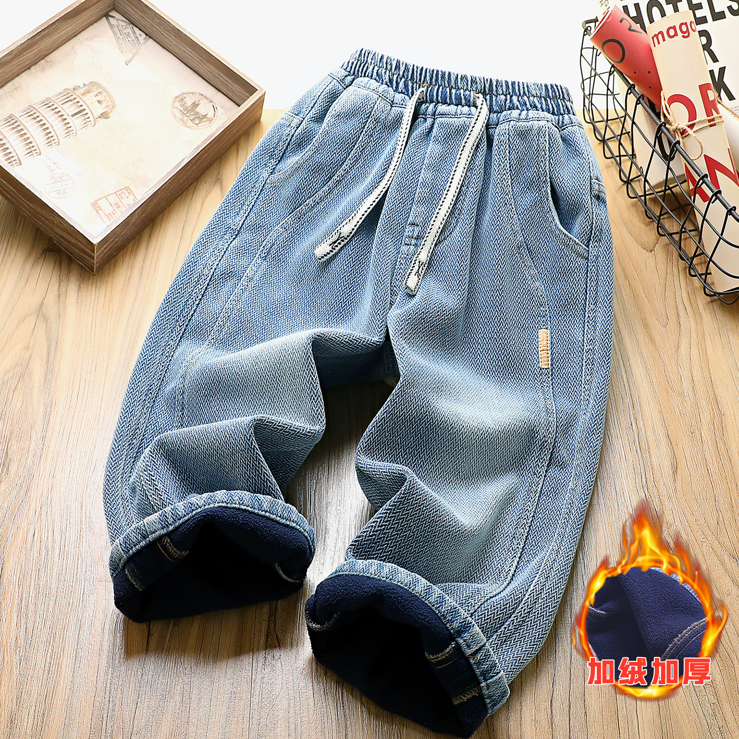 남아용 기모 데님 팬츠 가을 겨울 신상 아동용 두꺼운 루즈핏 캐주얼 팬츠 패션 중대형 아동 바지 2025 트렌드스토어 가기