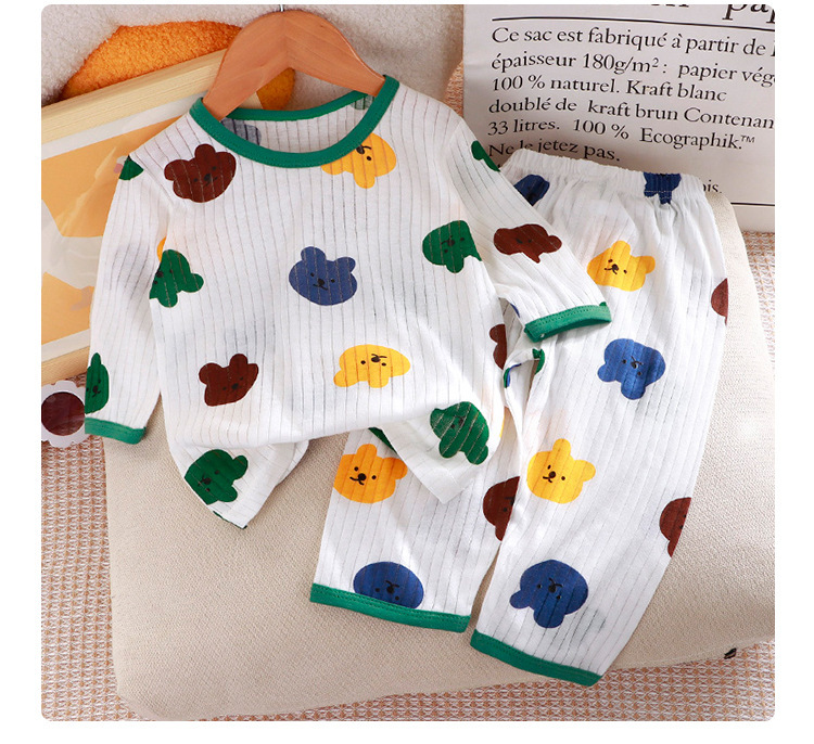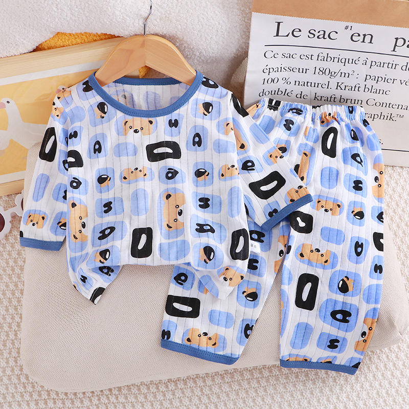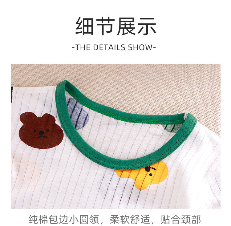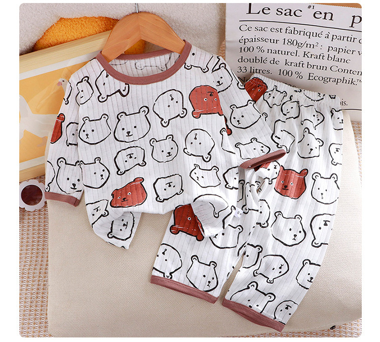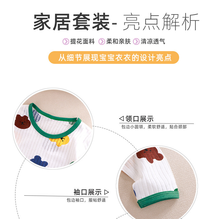 여름 어린이 면화 홈 의류 세트 소년 소녀 얇은 세븐 슬리브 파자마 투피스 아기 에어컨 옷