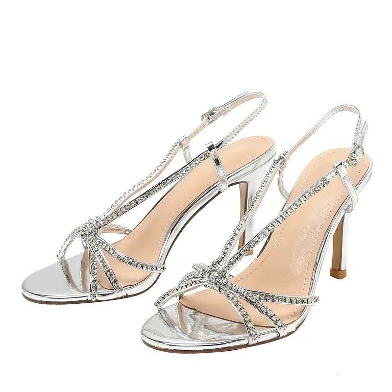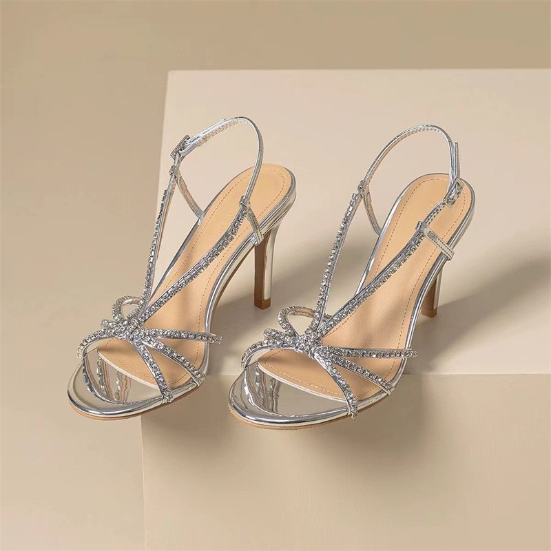 2025 새로운 샌들 라운드 토 라인스톤 하이힐 파인 힐 섹시 실버 프렌치 오픈 발가락 여성 신발스토어 가기