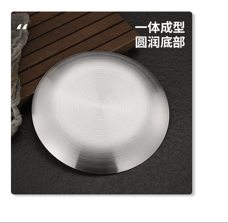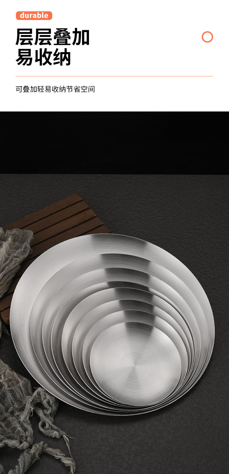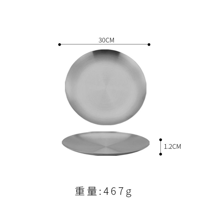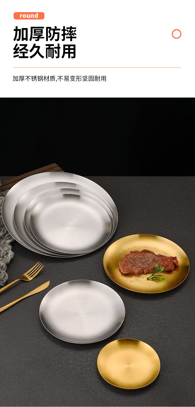 한국식 스테인레스 스틸 두꺼운 디스크 가장자리 얕은 접시 바베큐 플랫 바닥 가정용 트레이 과일 접시 얕은 접시 도매스토어 가기