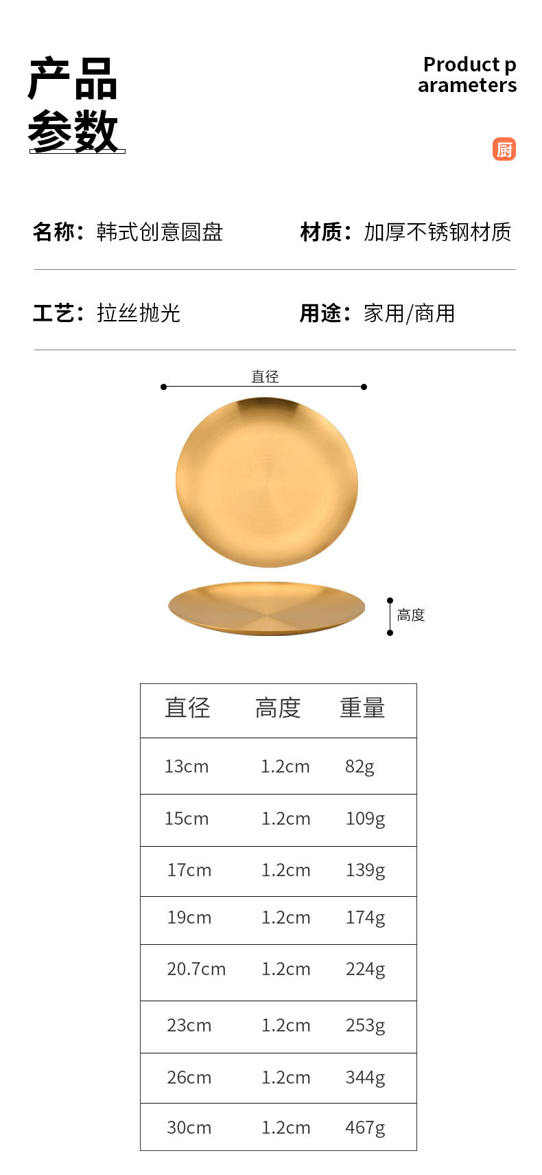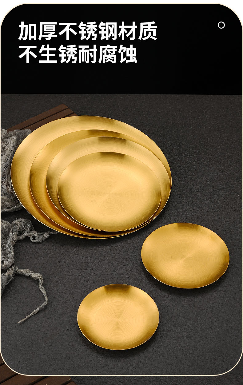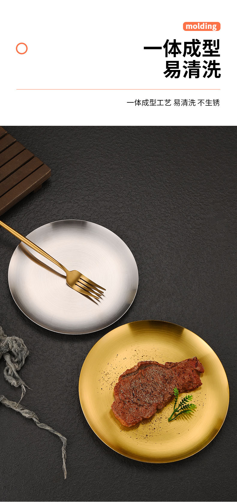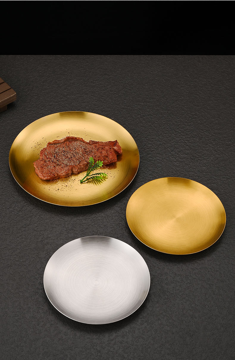 한국식 스테인레스 스틸 두꺼운 디스크 가장자리 얕은 접시 바베큐 플랫 바닥 가정용 트레이 과일 접시 얕은 접시 도매스토어 가기