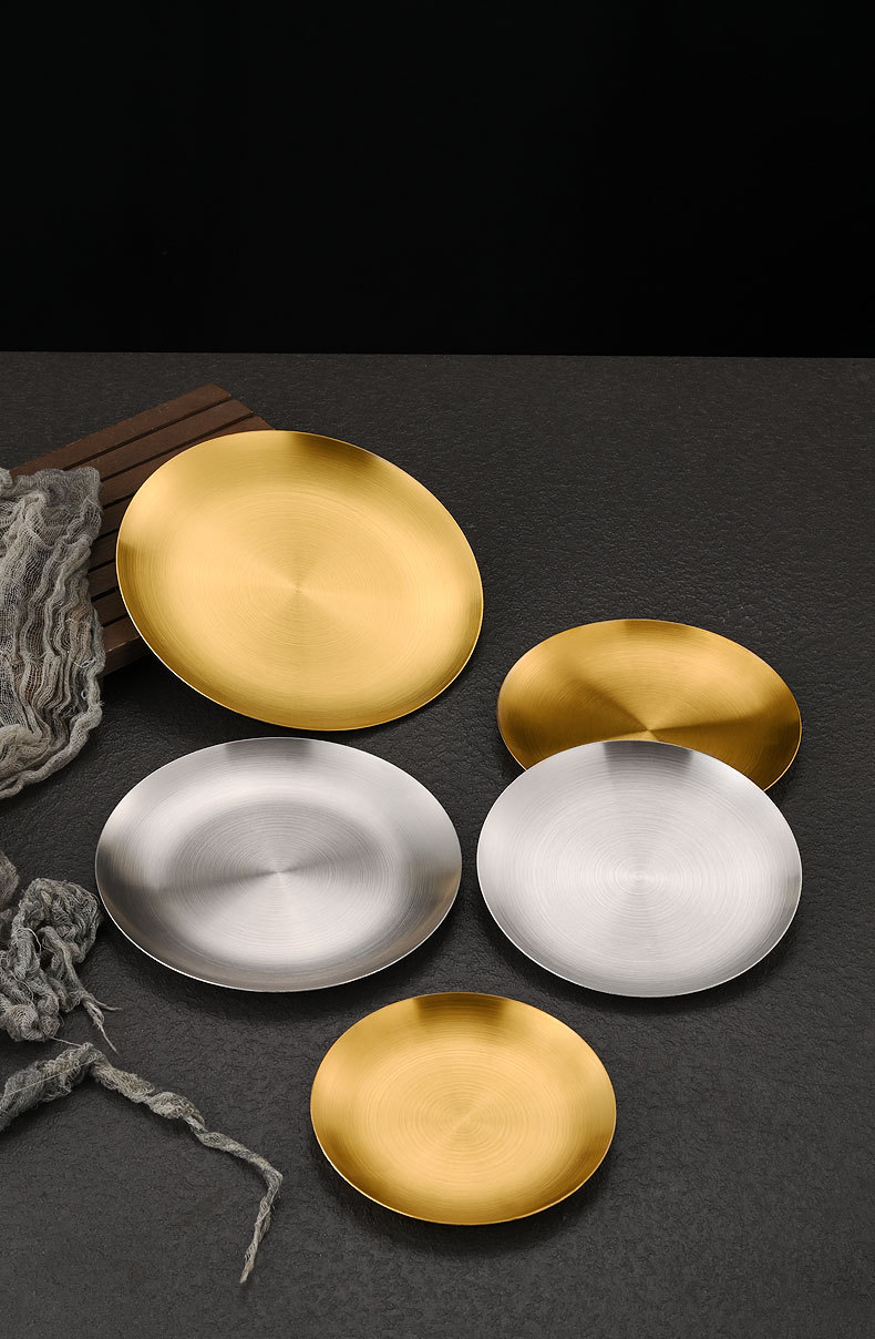 한국식 스테인레스 스틸 두꺼운 디스크 가장자리 얕은 접시 바베큐 플랫 바닥 가정용 트레이 과일 접시 얕은 접시 도매