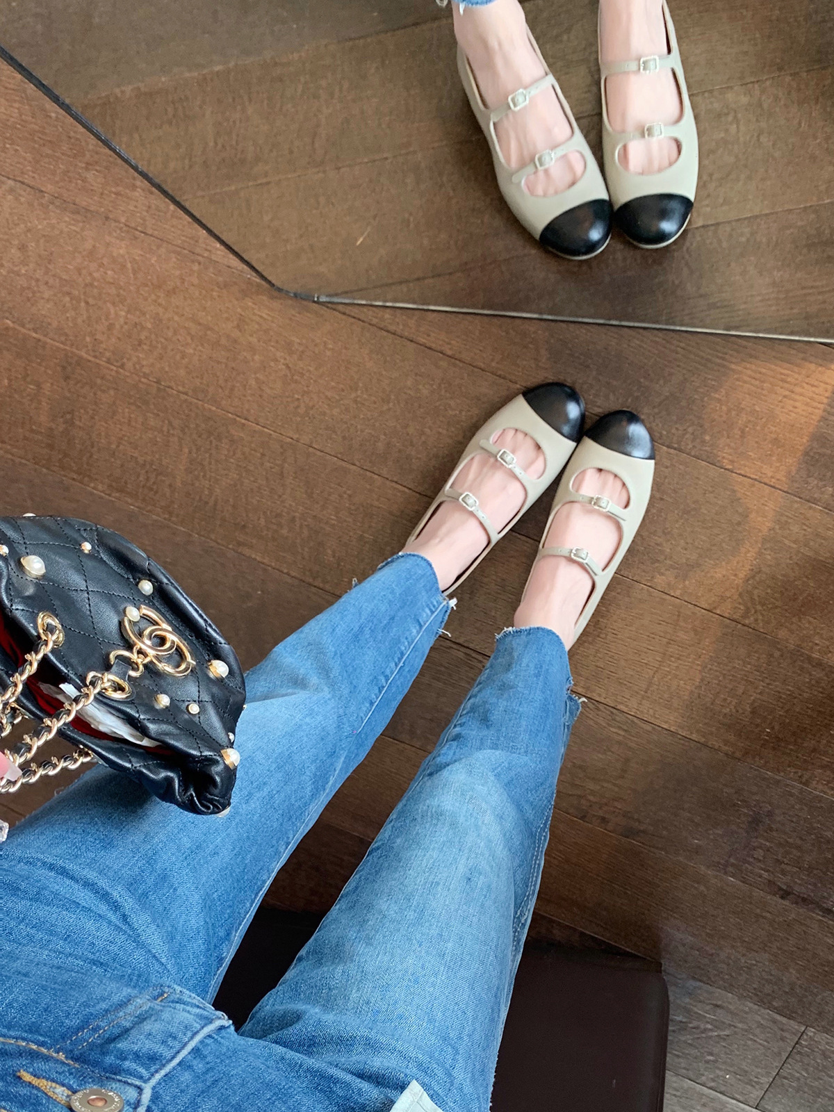 양가죽 버전 ~ 둥근 머리를 가진 포도 어머니 복고풍 프랑스 평면 모조 다이아몬드 얕은 입 다용도 메리 제인 신발 여성 신발스토어 가기