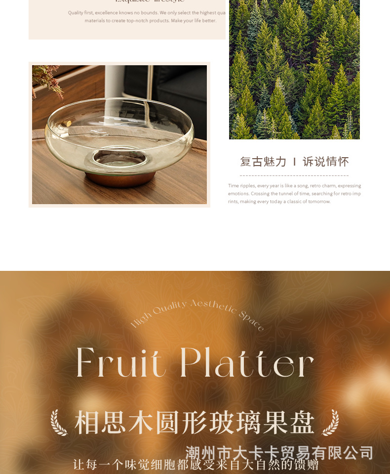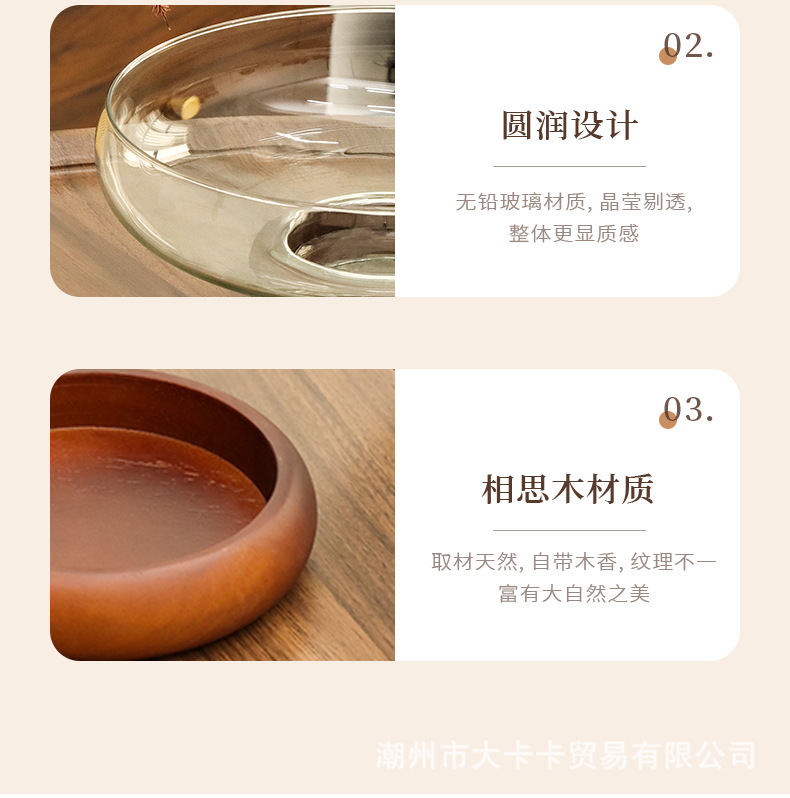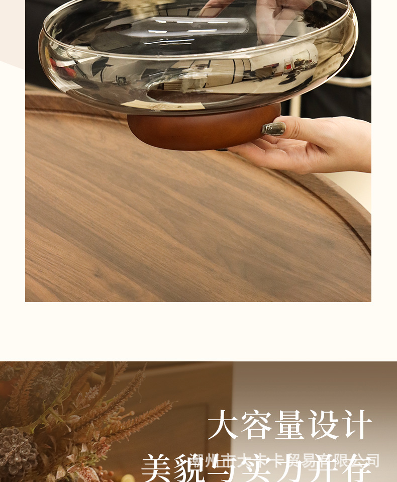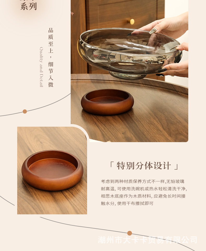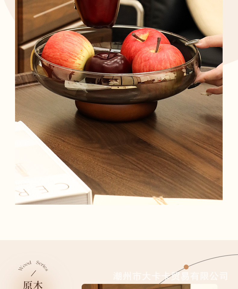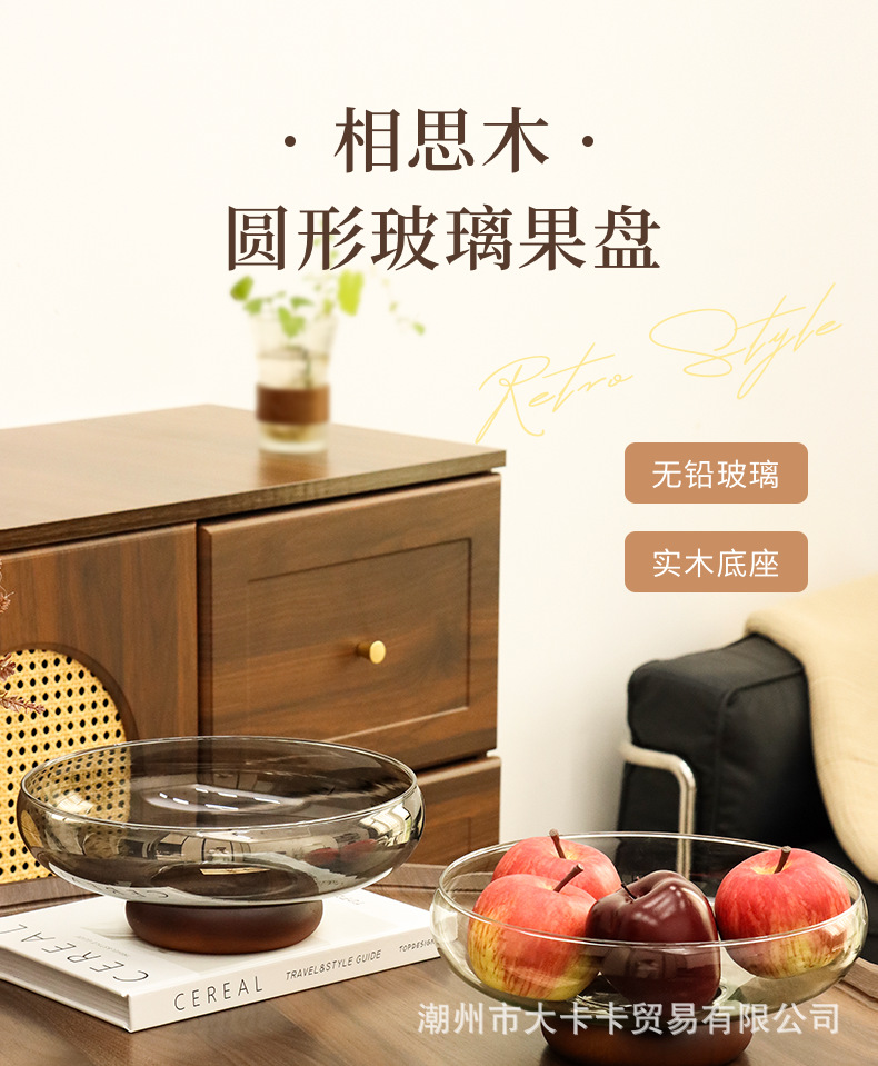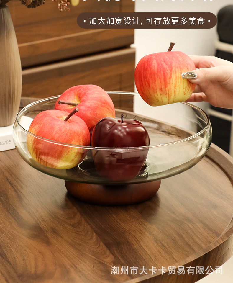아카시아 나무 유리 스낵 과일 플레이트 라이트 럭셔리 노래 스타일 미적 고급 감각 과일 플레이트 캔디 플레이트 거실 스낵 진자스토어 가기