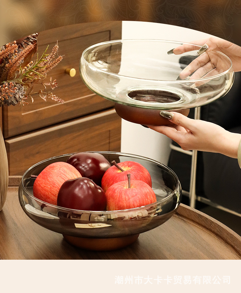아카시아 나무 유리 스낵 과일 플레이트 라이트 럭셔리 노래 스타일 미적 고급 감각 과일 플레이트 캔디 플레이트 거실 스낵 진자