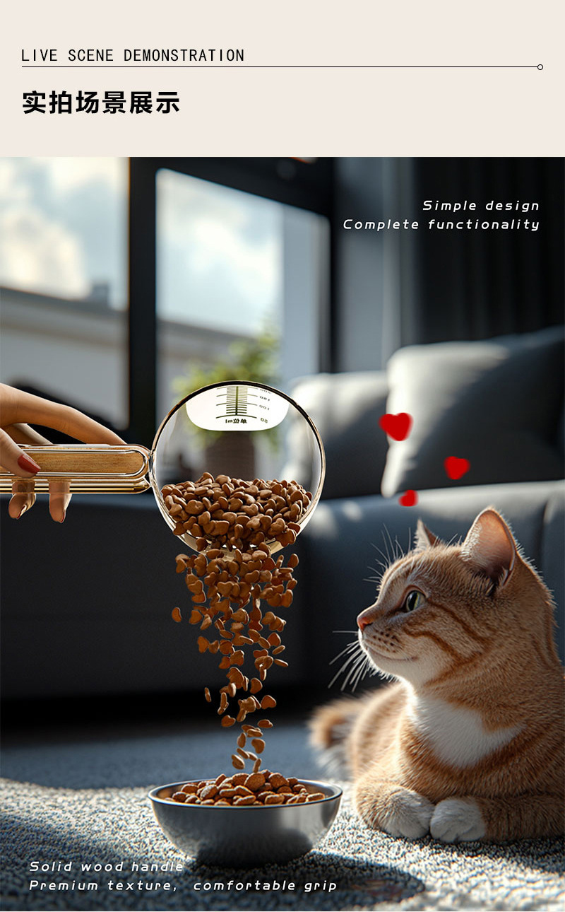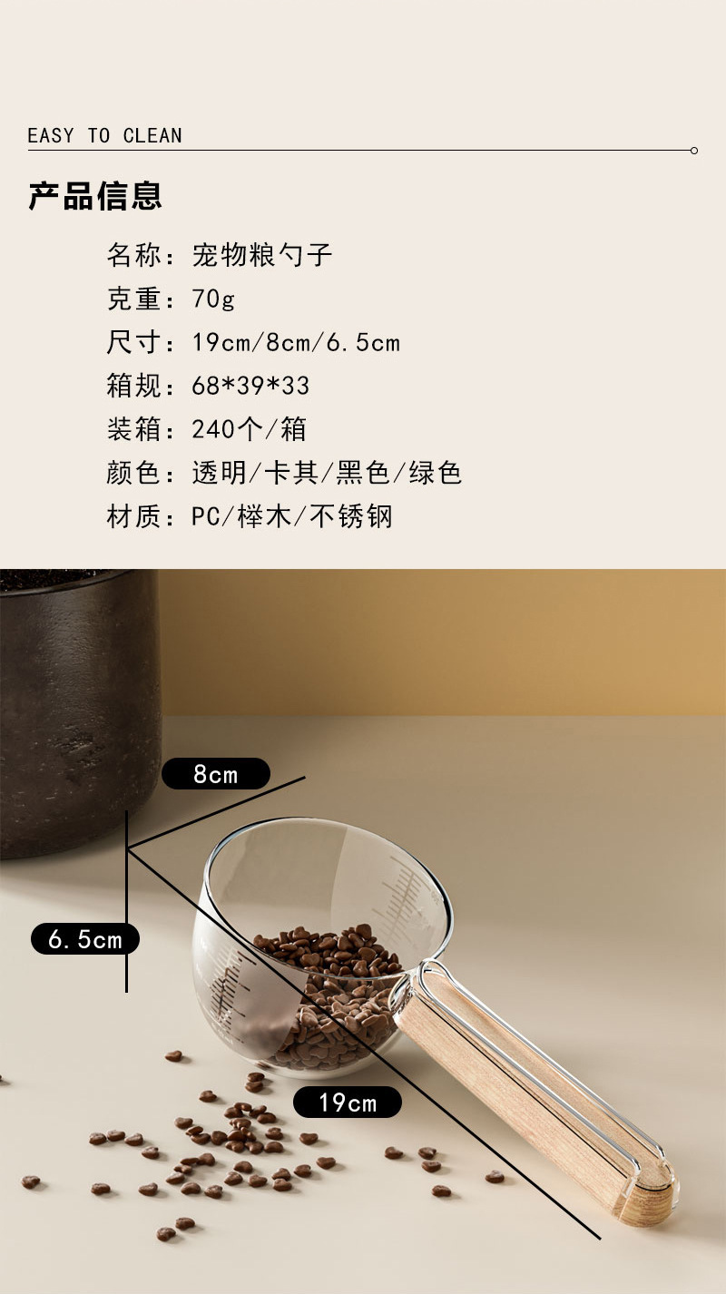새로운 나무 손잡이 고양이 음식 숟가락 클립 고양이와 개 용품 식품 삽 개 사료 숟가락 애완 동물 용품