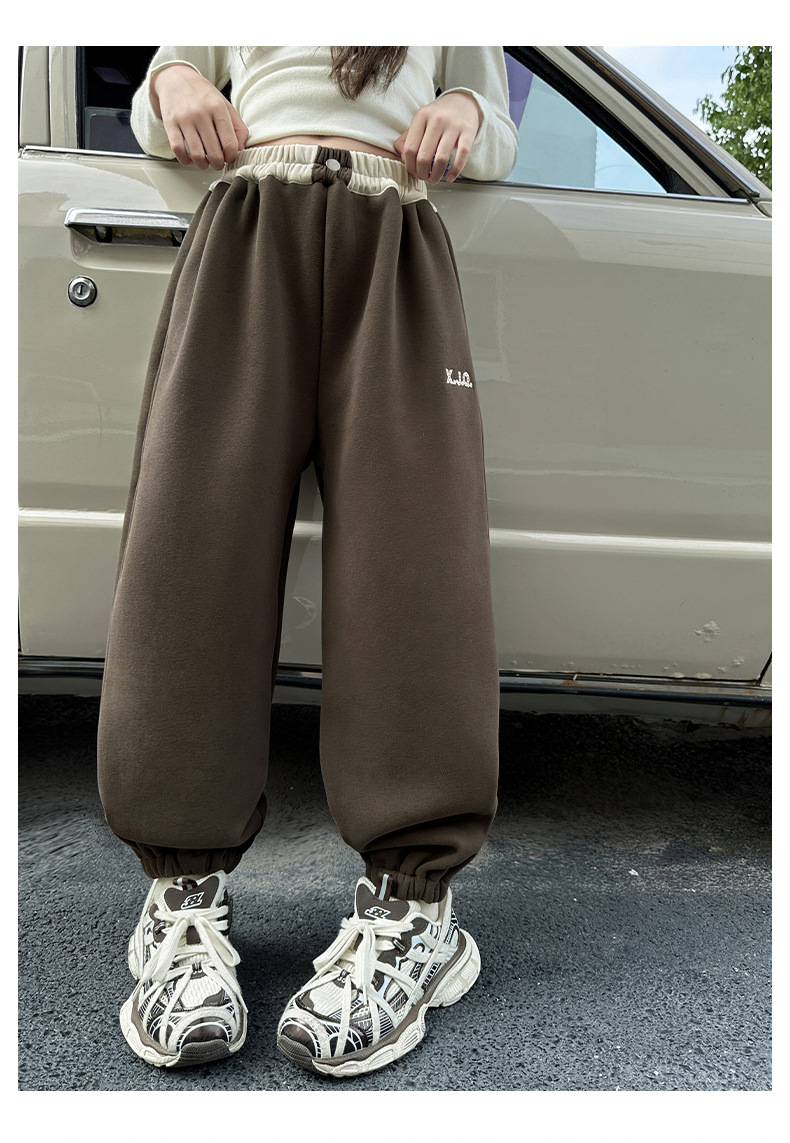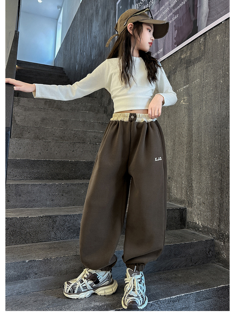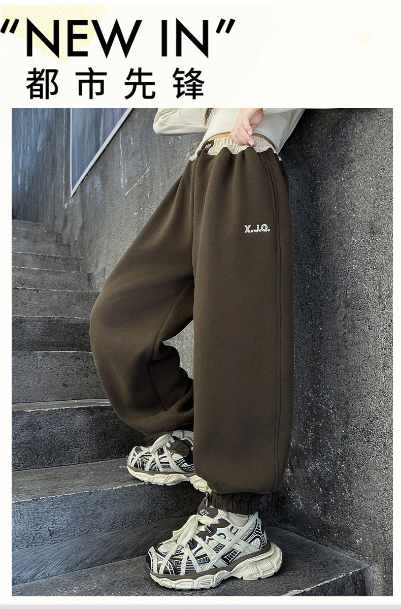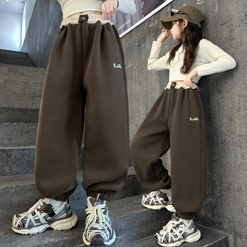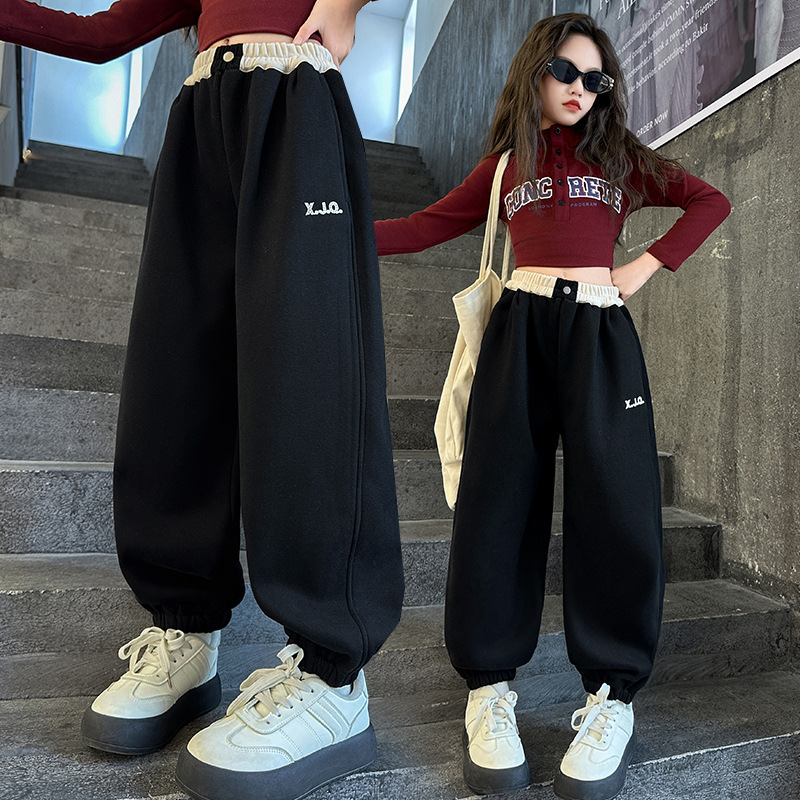소녀의 봄 2025 봄 바지 가을과 겨울 착용 소녀 큰 소년의 거리 바지 운동복 스포츠 바지 캐주얼 스웨트 바지