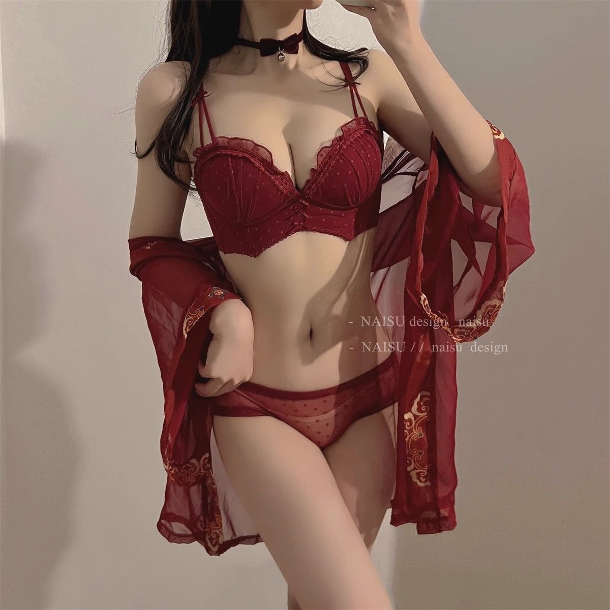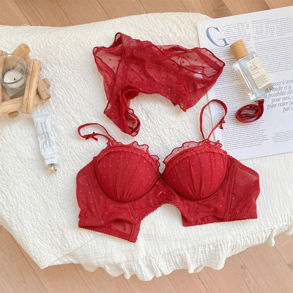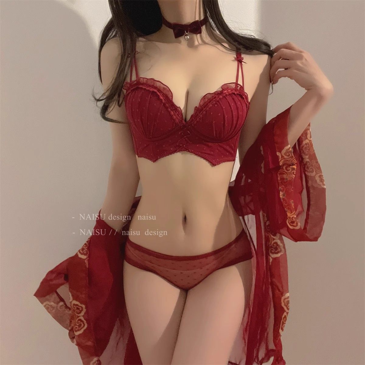 뱀의 해 신부의 삶의 해 빨간 속옷 세트 바람에 대한 여성의 순수한 욕망 작은 가슴 수집 금지 강철 반지 처짐 방지 브라