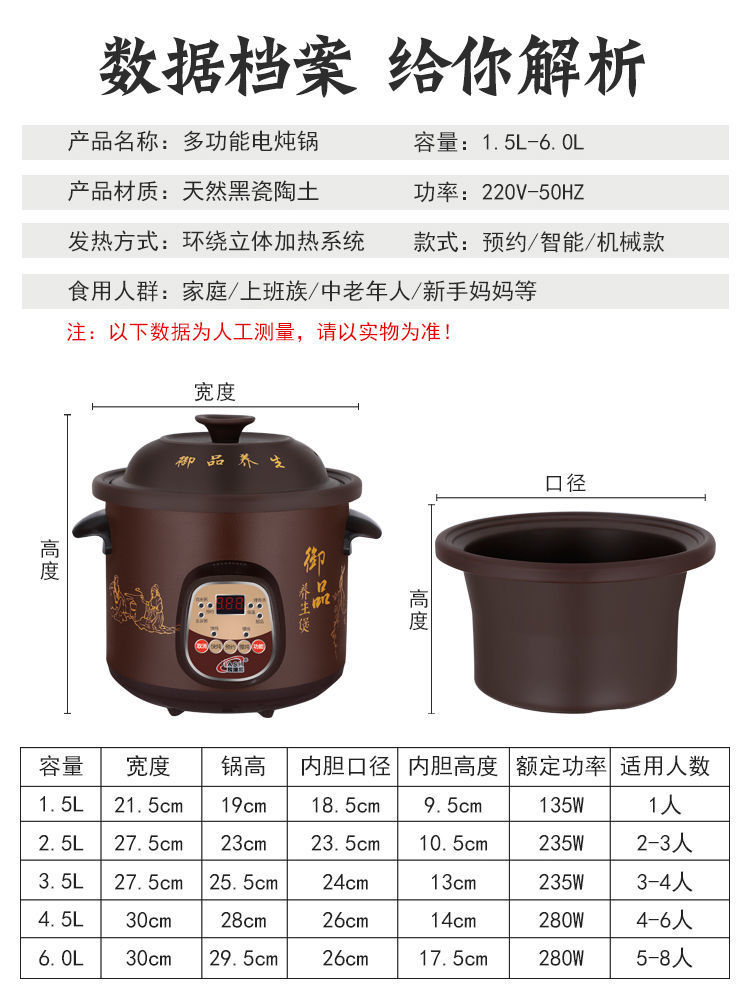 전기 스튜 냄비 자동 스튜 수프 냄비 전기 캐서롤 가정용 건강 냄비 아기 죽 요리 냄비 전기 스튜 냄비 세라믹