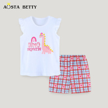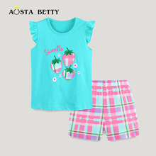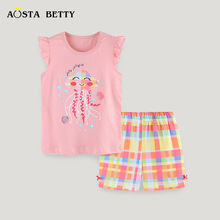 유럽과 미국 스타일의 소녀 짧은 소매 세트 여름 새로운 나비 인쇄 어린이 반바지 세트 패션 소녀 세트스토어 가기