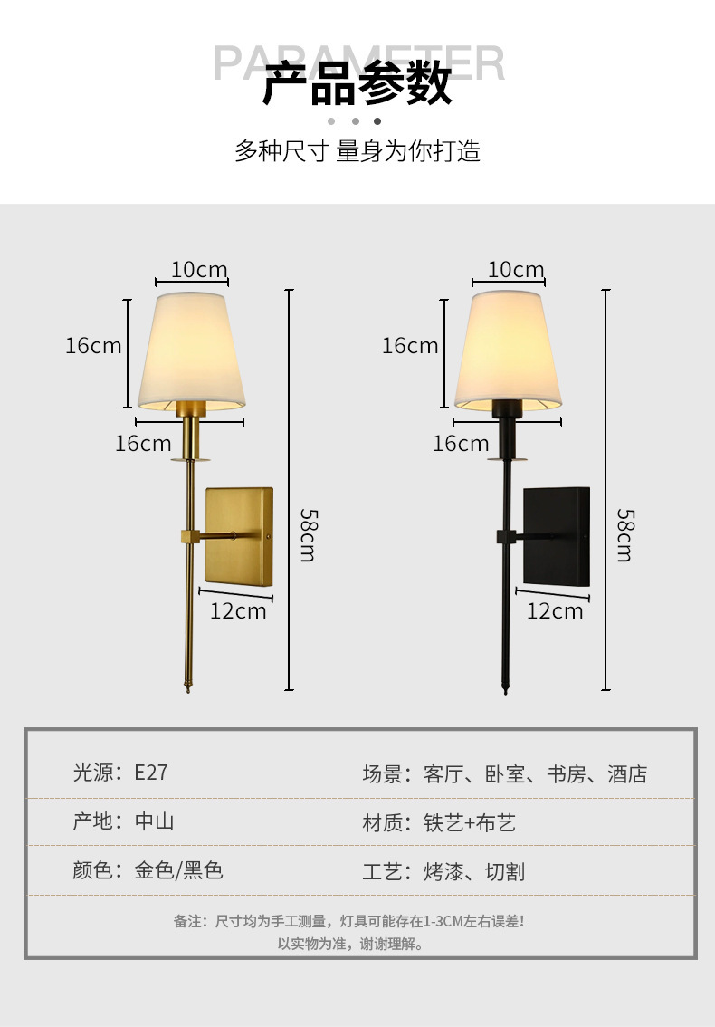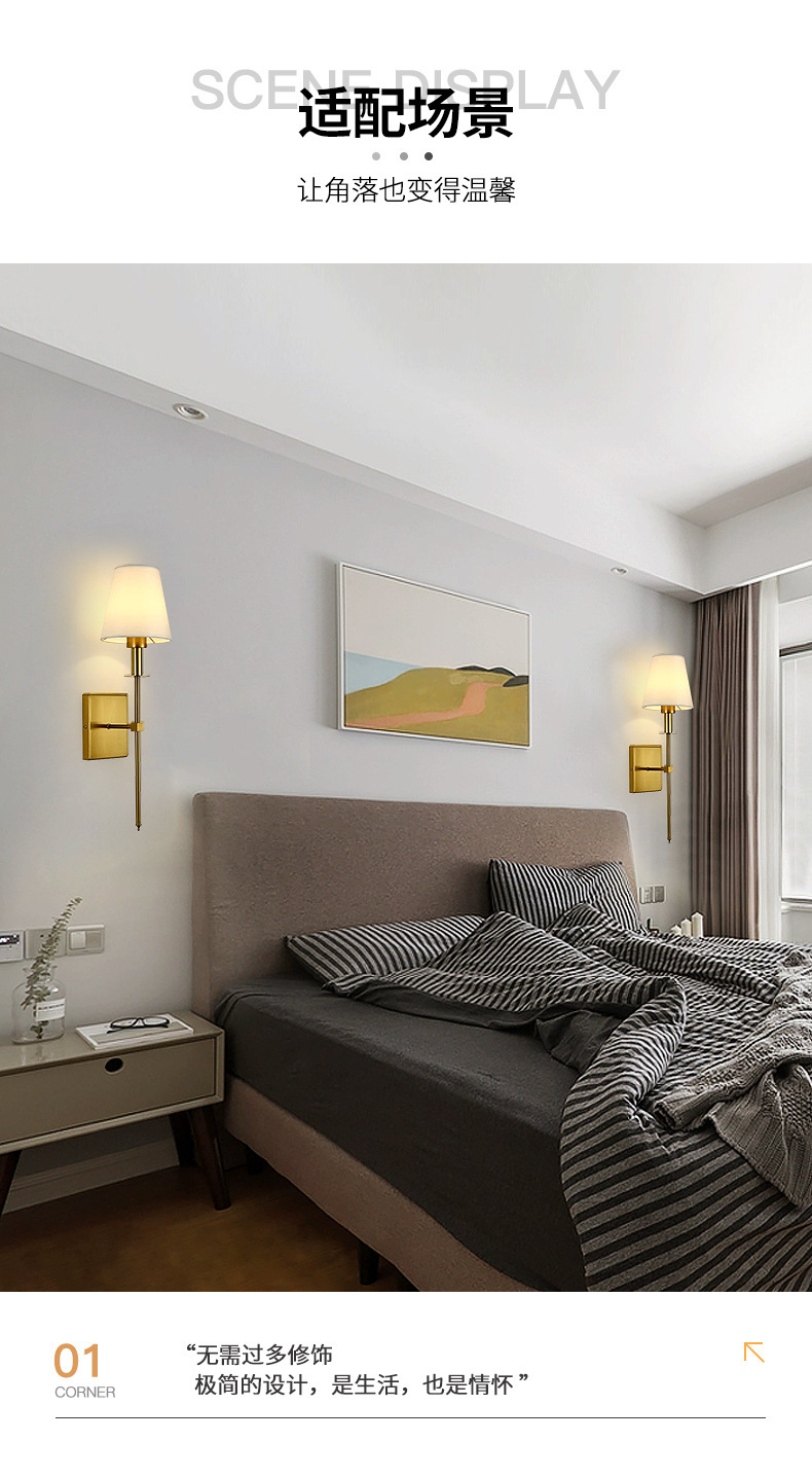 미국 간단한 천 커버 벽 램프 통로 램프 국경 새로운 실내 벽 램프 침실 침대 옆 독서 램프 호텔 벽 램프 램프스토어 가기