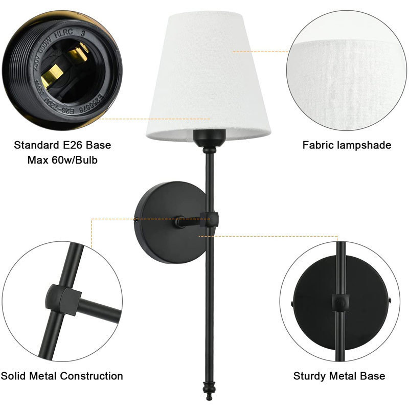 미국 간단한 천 커버 벽 램프 통로 램프 국경 새로운 실내 벽 램프 침실 침대 옆 독서 램프 호텔 벽 램프 램프