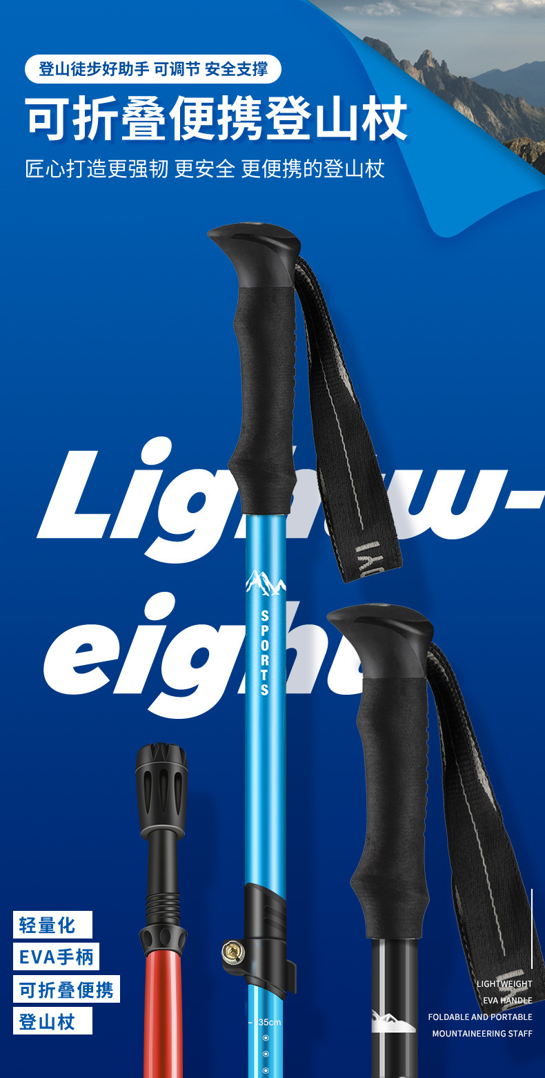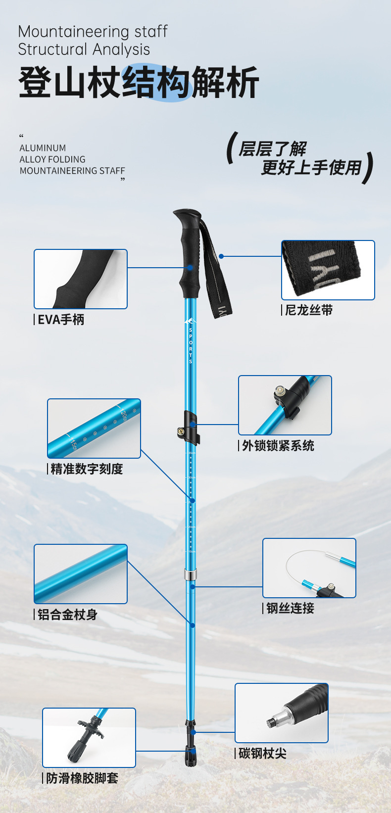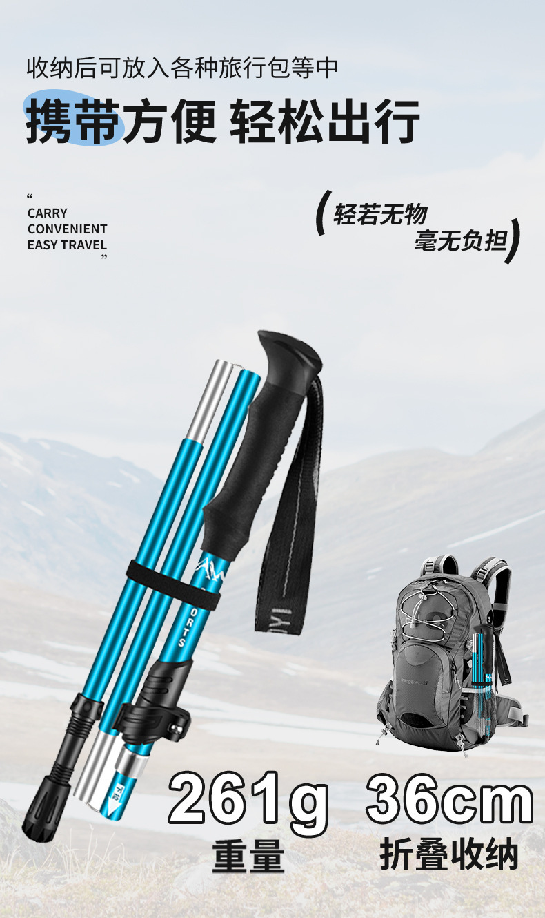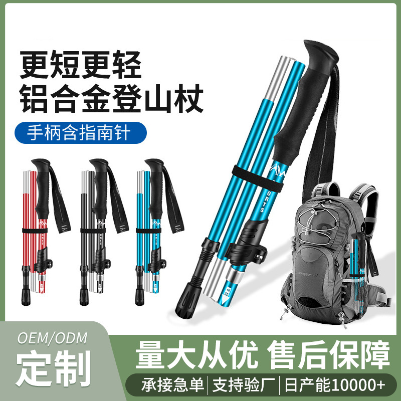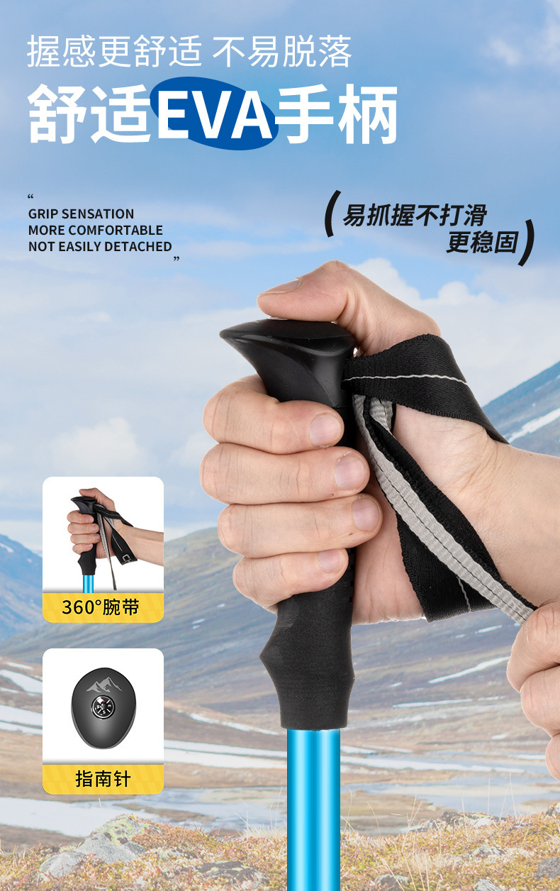 국경 간 야외 등산 스틱, 접이식 초경량 알루미늄 합금 텔레스코픽 스틱, 전문 하이킹 스틱, 맞춤형 하이킹 스틱스토어 가기
