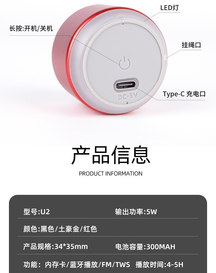 국경 폭발 U2 휴대용 무선 창조적 인 작은 강철 총 LED 조명 미니 알루미늄 합금 블루투스 스피커 뜨거운 판매