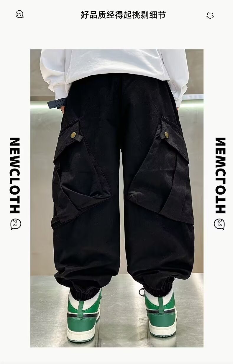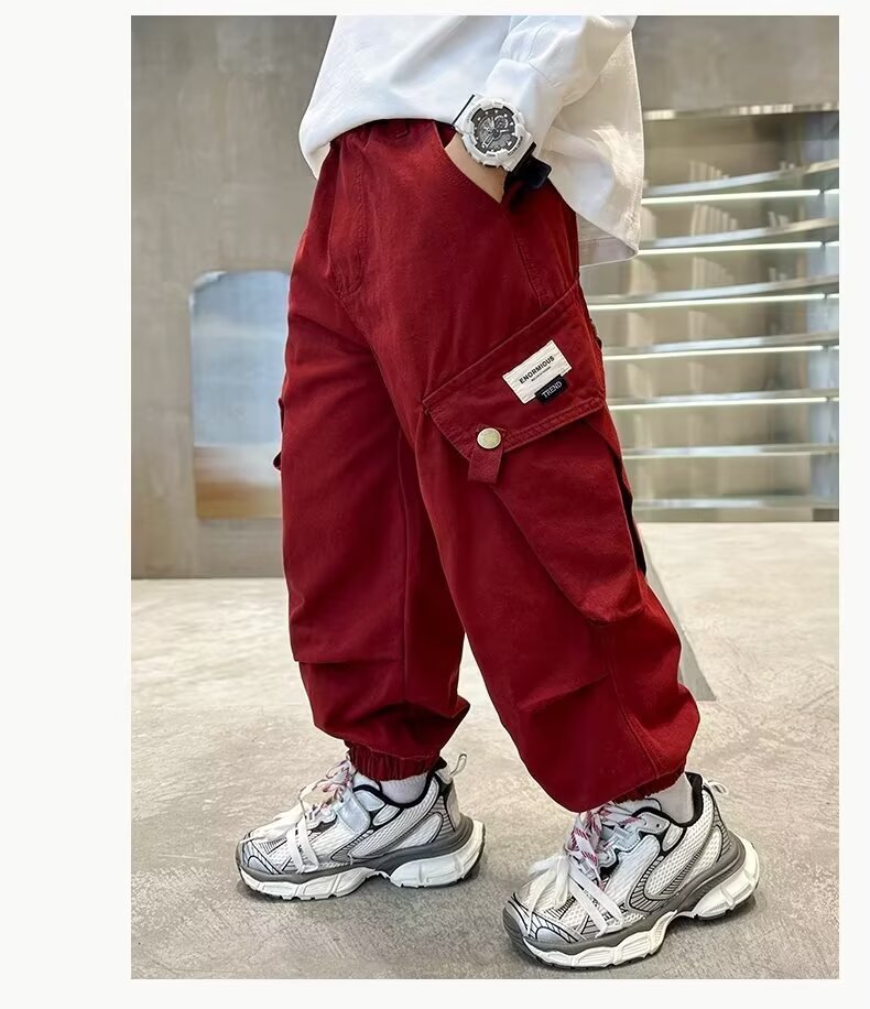 어린이 바지 소년 캐주얼 바지 가을 바지 2024 봄과 가을 새로운 기모 중대형 어린이 가을 크록 바지 트렌디